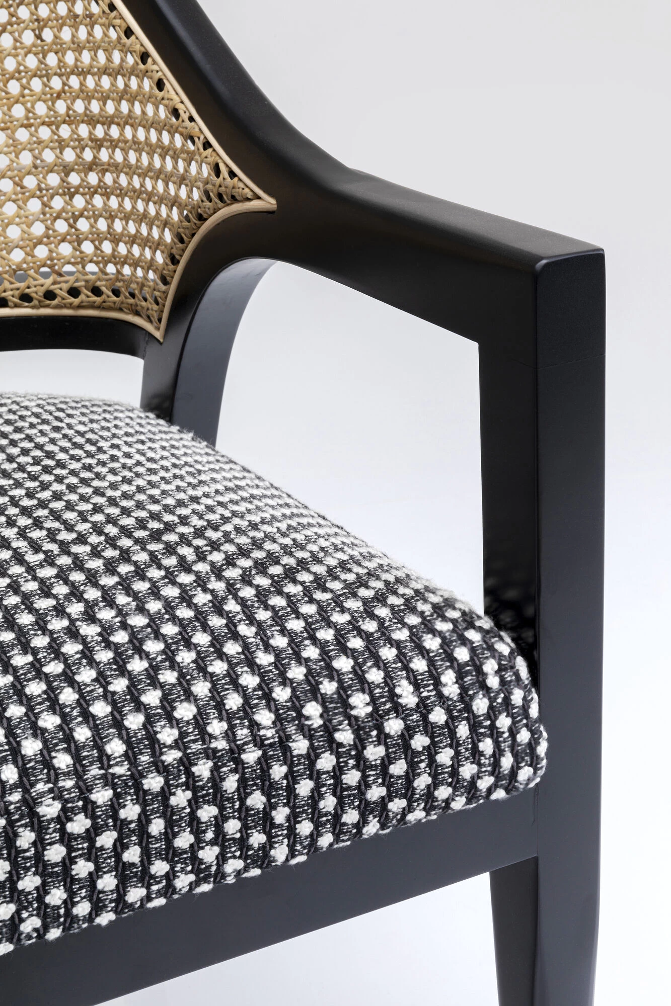 - Armlehnstuhl im Retrostil: RĂĽckenlehne mit Wiener Geflecht aus Rattan