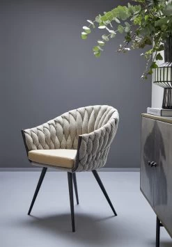 - Ein Hingucker: gemütlicher Armlehnstuhl, extra stylisch mit Flechtung im lässigen Tweed-Look und mit beigem Sitzkissen
