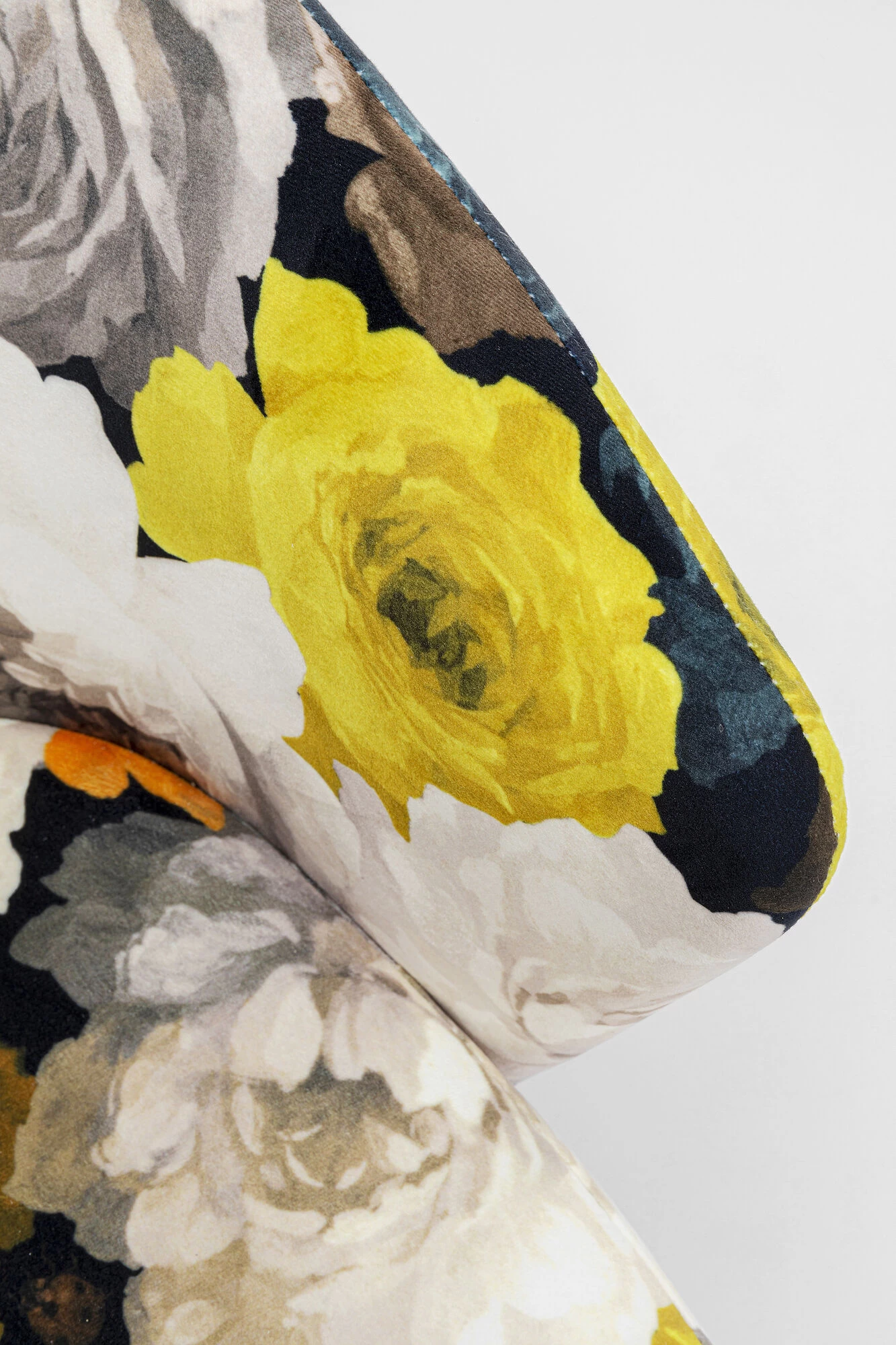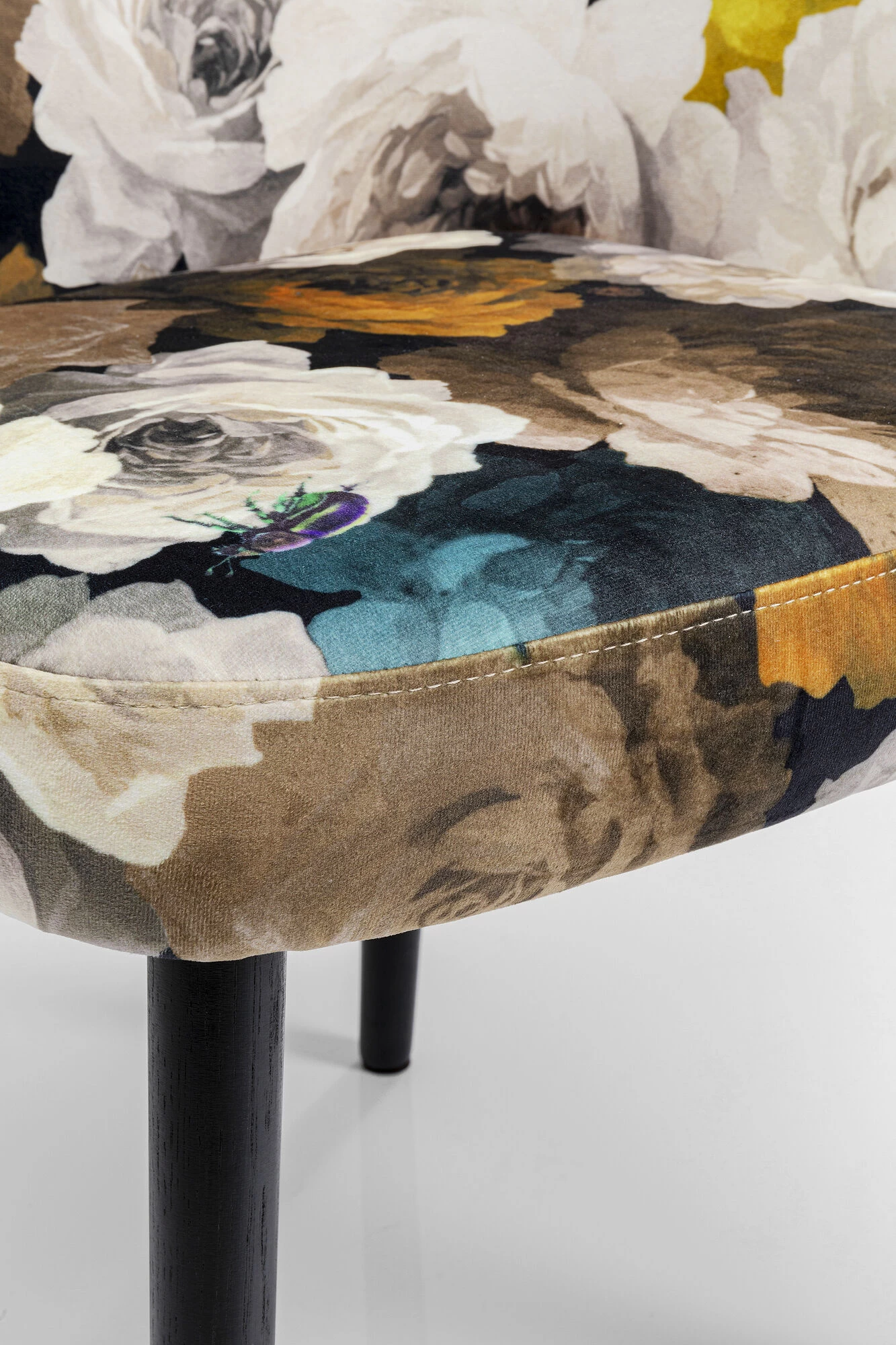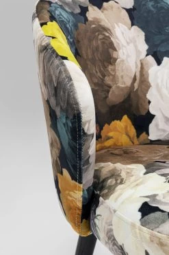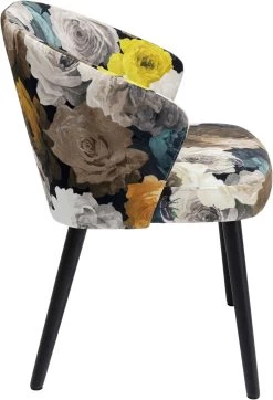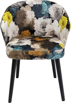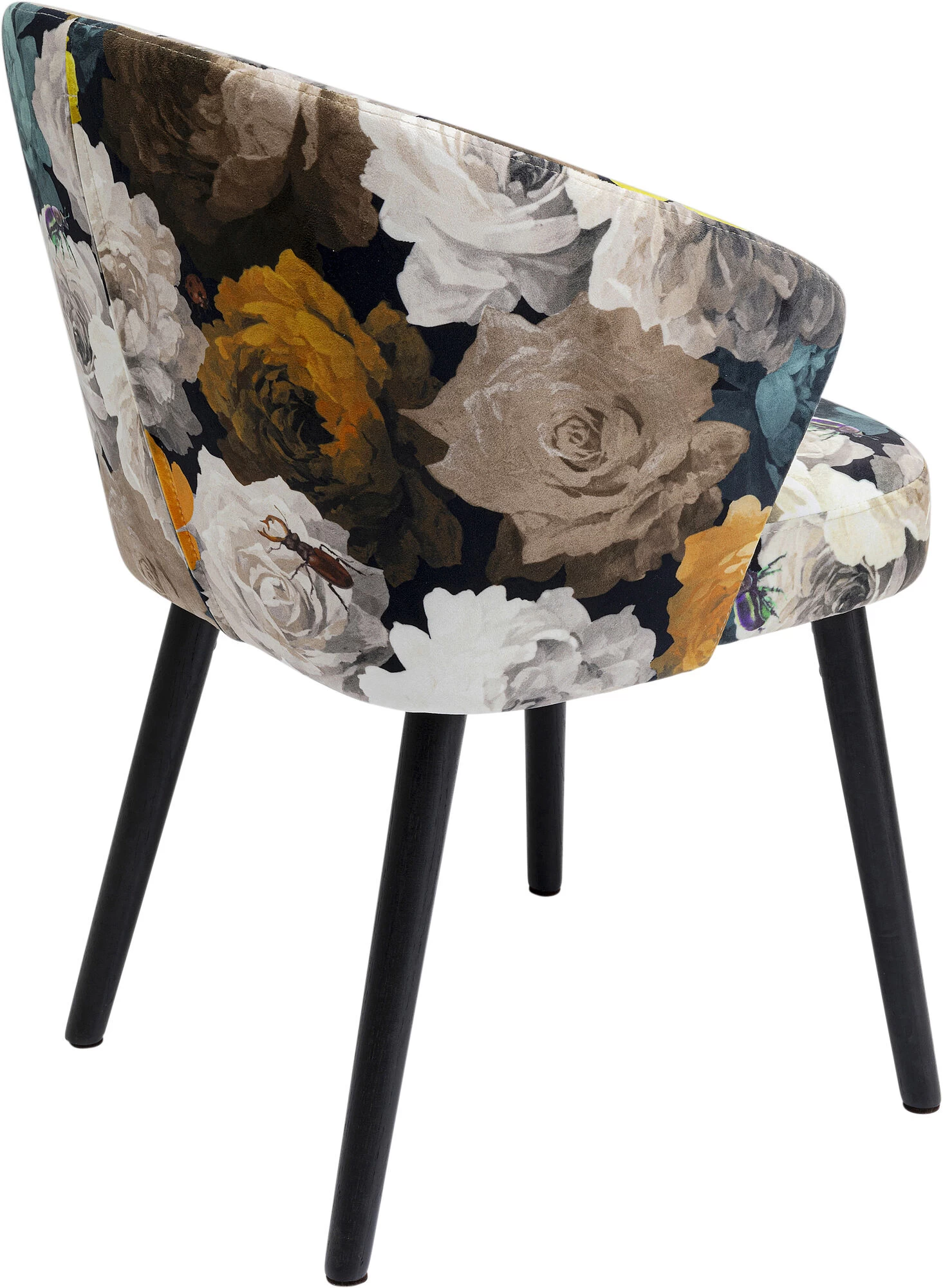 - Blumig-bunter Armlehnstuhl mit schlanken Beinen und vielen praktischen Einsatzmöglichkeiten für Wohn- und Arbeitsräume