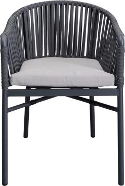 - Grauer Armlehnstuhl fĂĽr drinnen und drauĂźen, 76 x 57 x 62 Zentimeter (H/B/T)