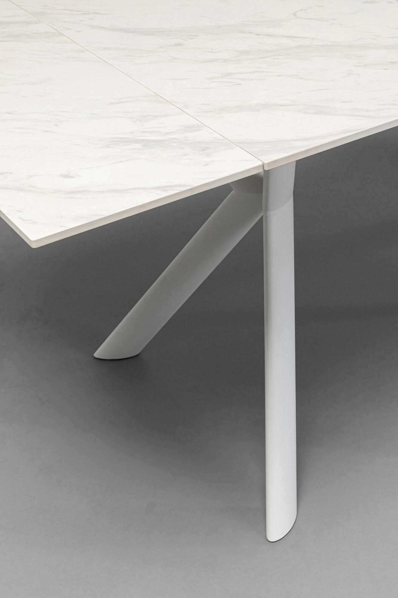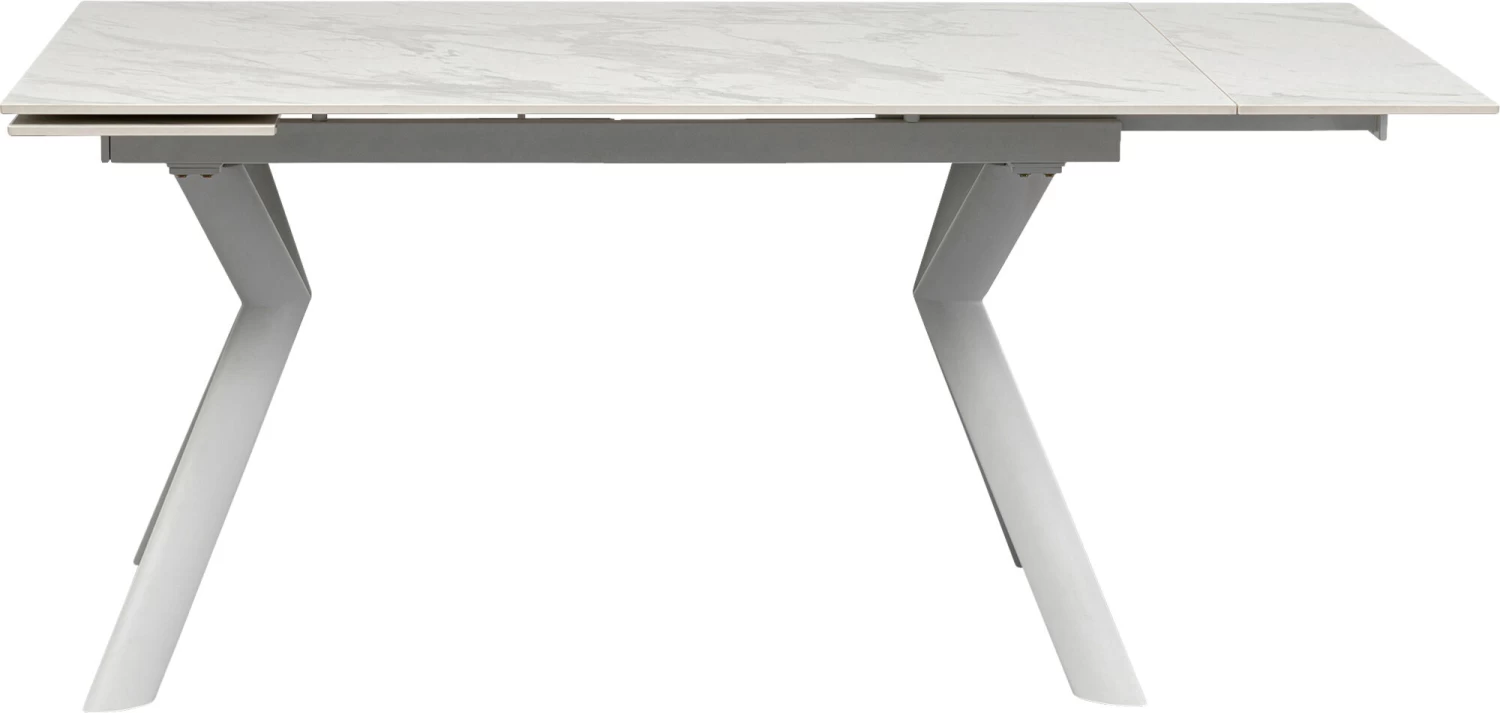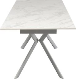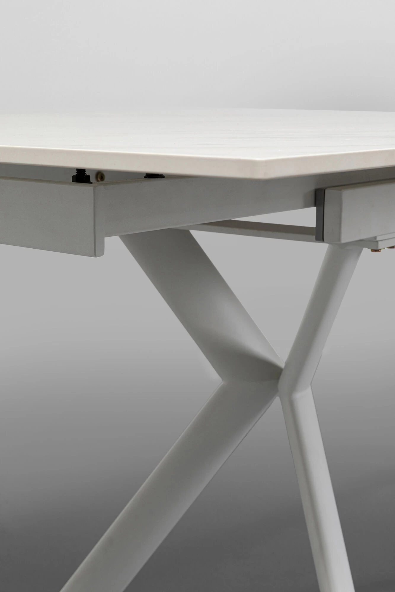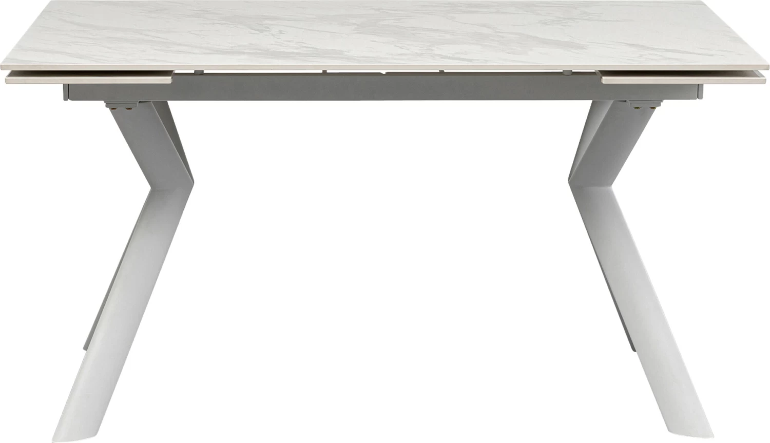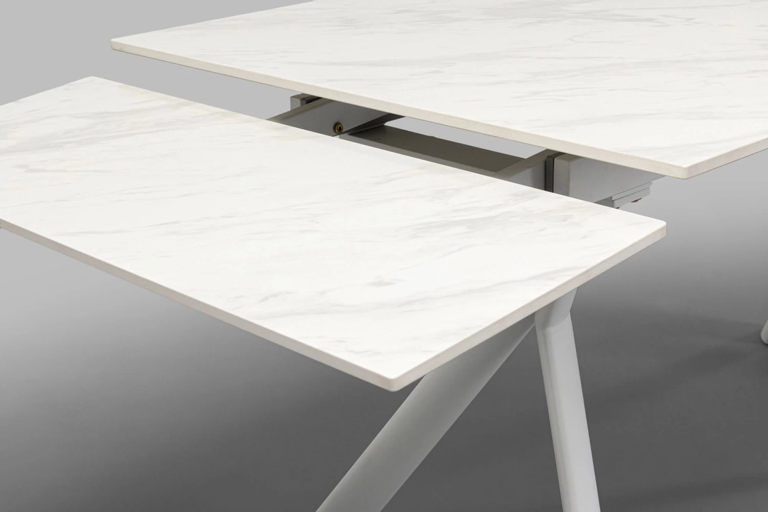 - Weißer Auszieh-Tisch mit Keramik-Tischplatte, von 140cm bis 200cm ausziehbar, 76cm hoch und 80cm tief