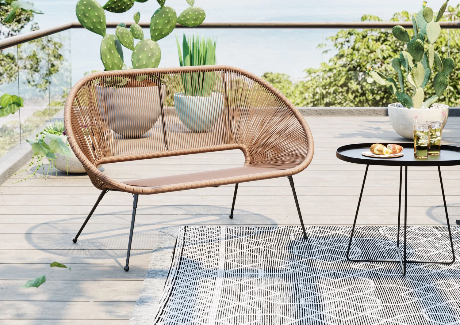 - Sitzbank im Acapulco-Stil in der Farbe Natur fĂĽr drinnen und drauĂźen, 81 x 121 x 71 Zentimeter (H/B/T)