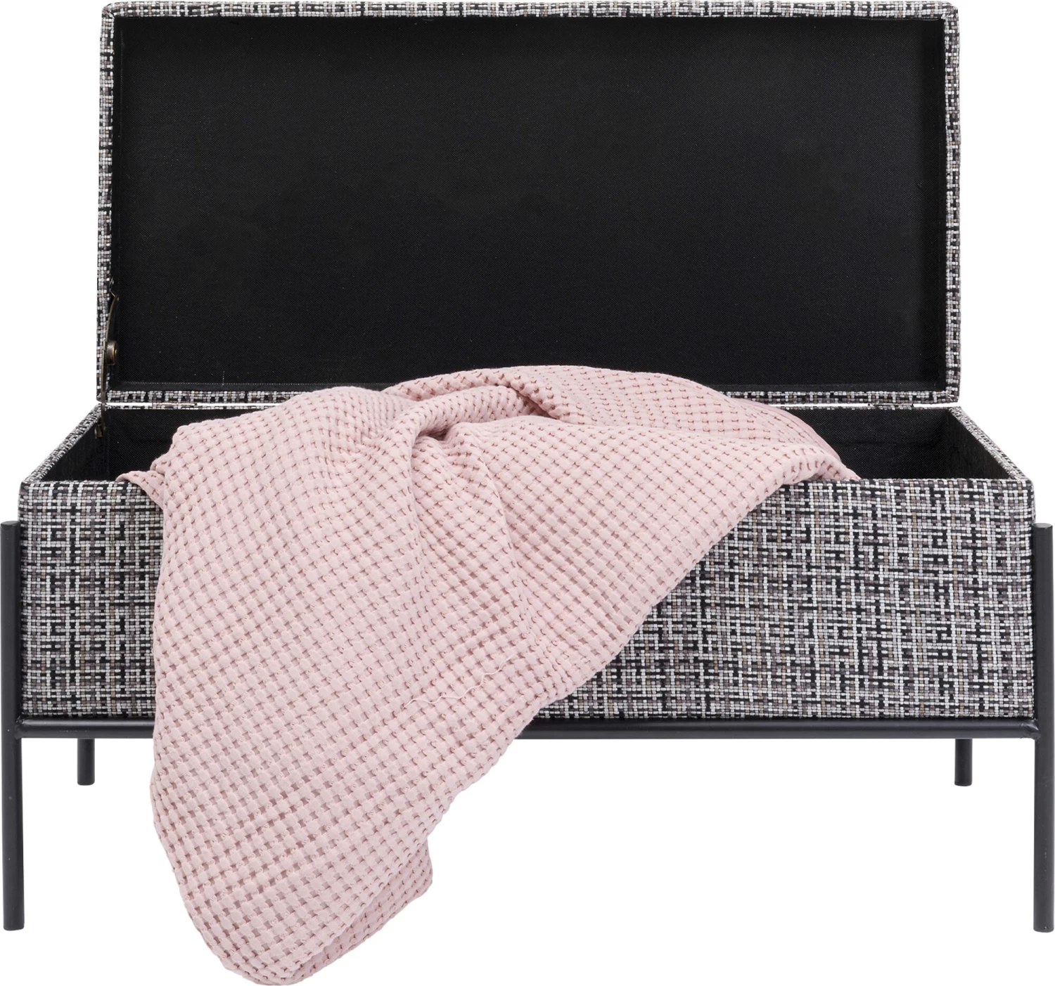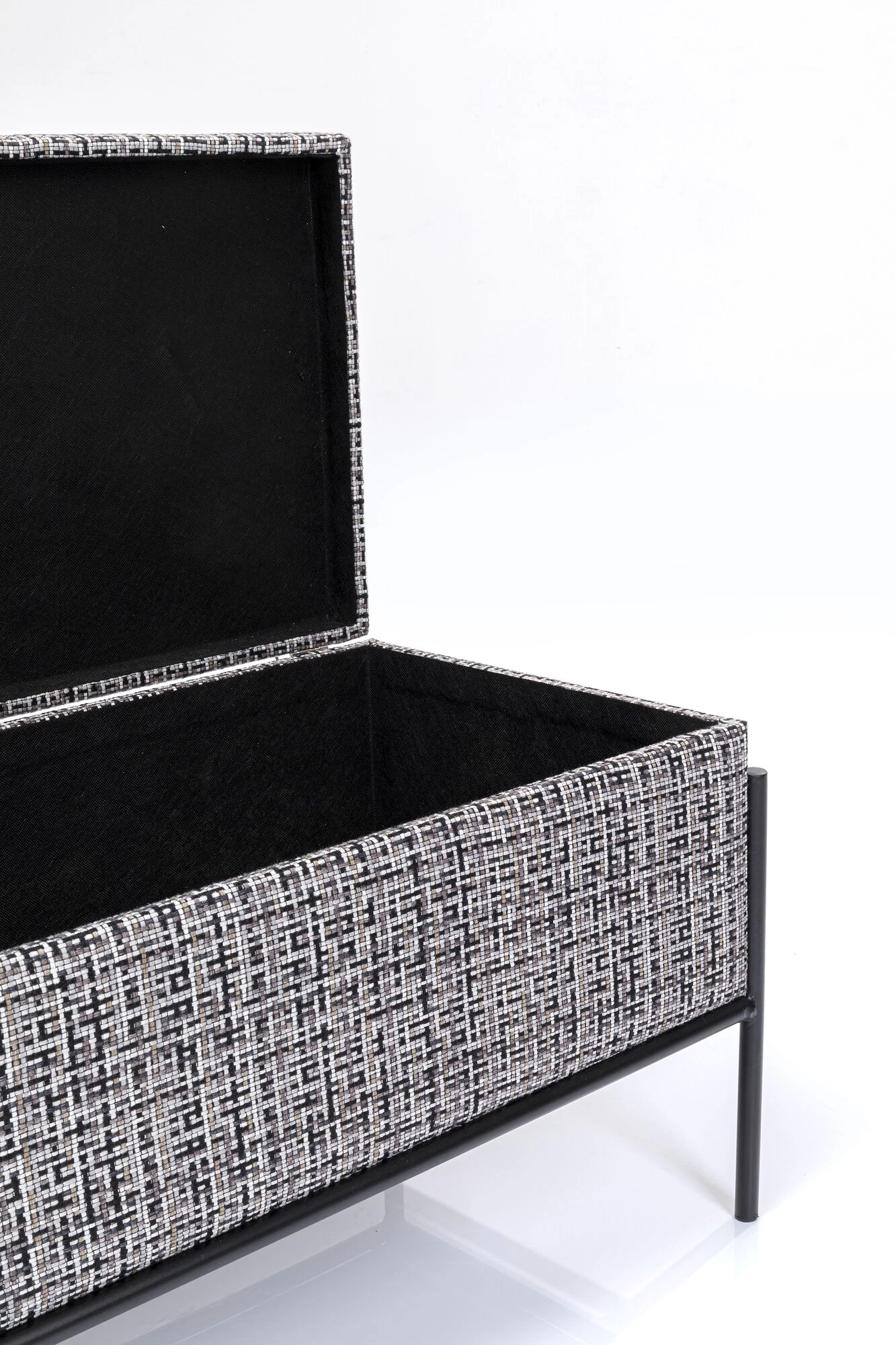 - Edle Designerbank mit Strukturstoff in Schwarz, WeiĂź und Grau und filigranem Stahlgestell