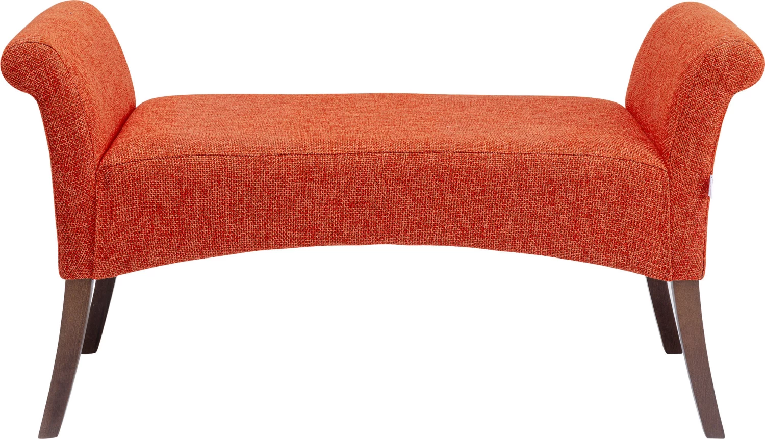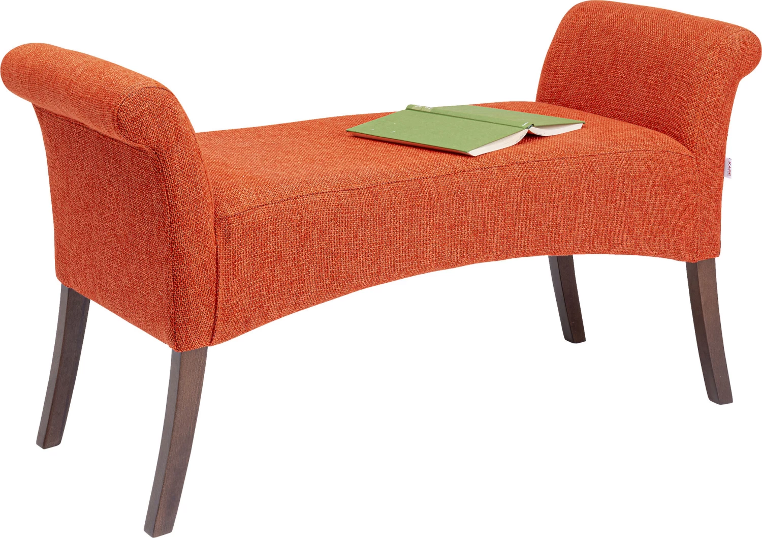 - Braun lackierte Massivholz-Beine und der melierte Webstoff in warmem Orangerot verleihen der Bank besonders wohnlichen Charakter