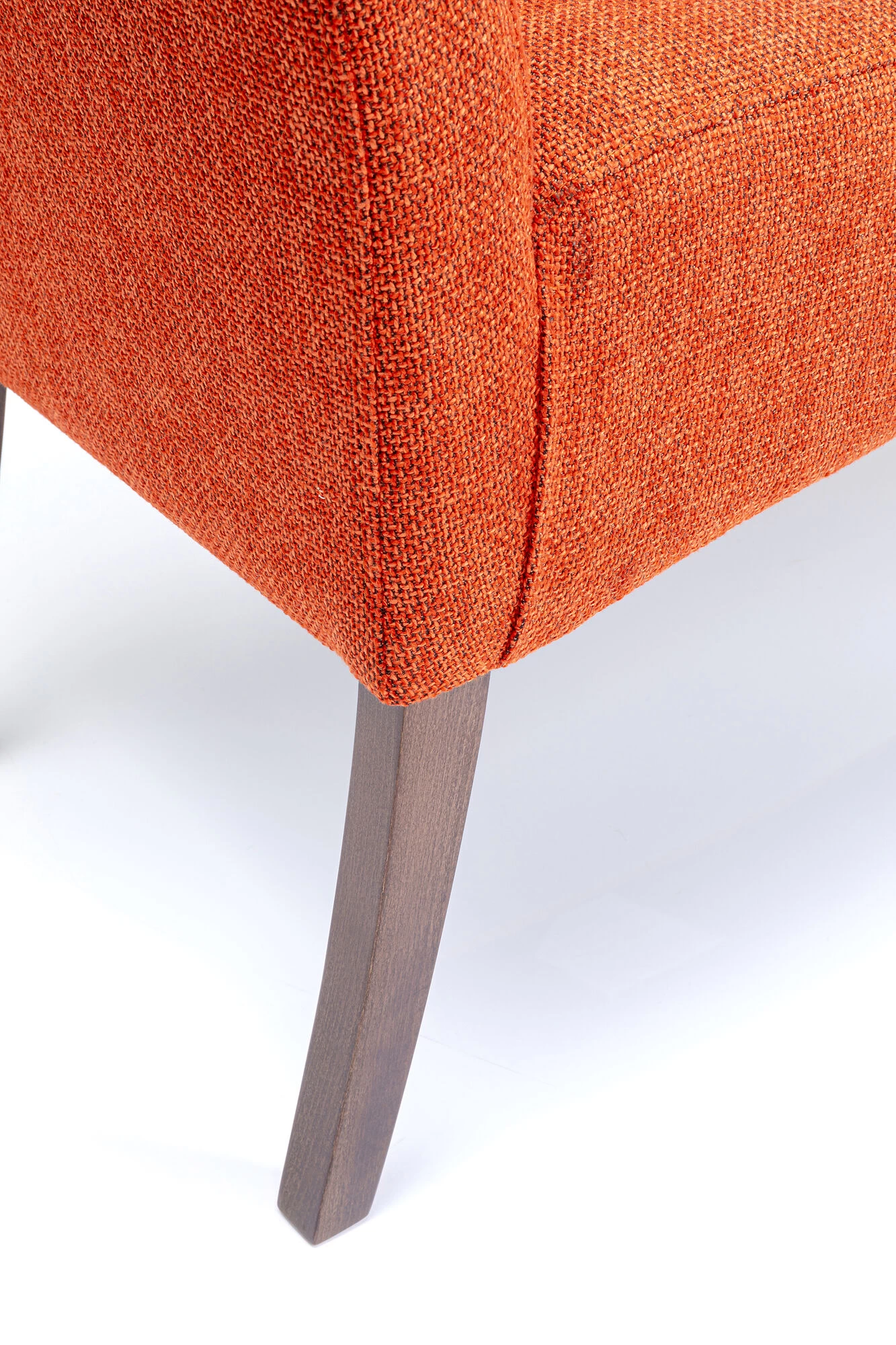 - Sitzbank in Orange mit Armlehnen und Holzbeinen 62 x 107 x 38 Zentimeter (H/B/T)
