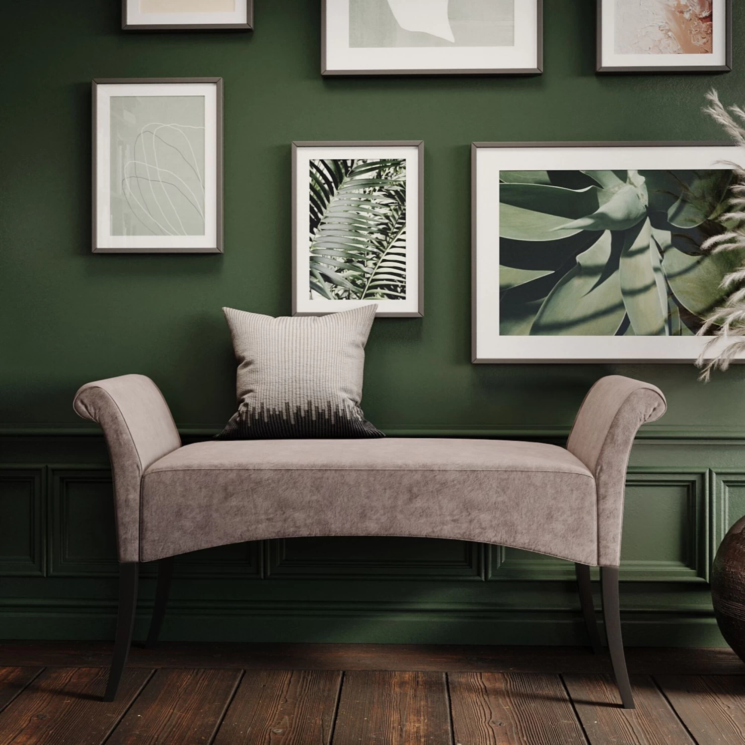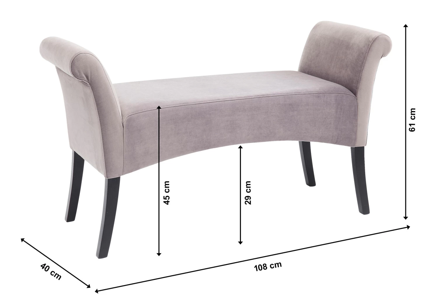 - Samtige, bequem gepolsterte Sitzbank in Grau mit schwarzen Beinen aus massivem Buchenholz