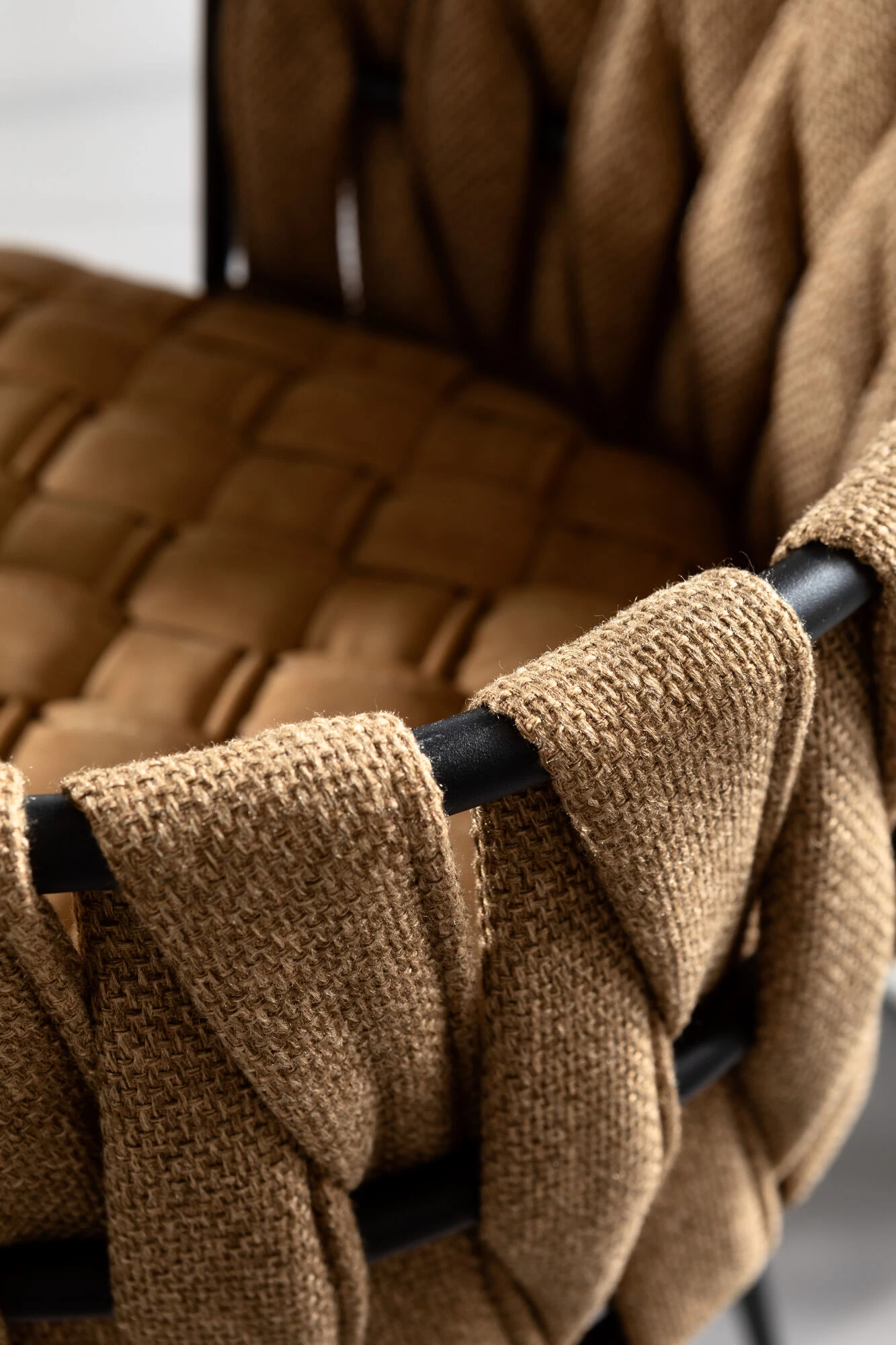 - Wirkt durch geflochtene Elemente wie ein Korbsessel, ist aber viel bequemer