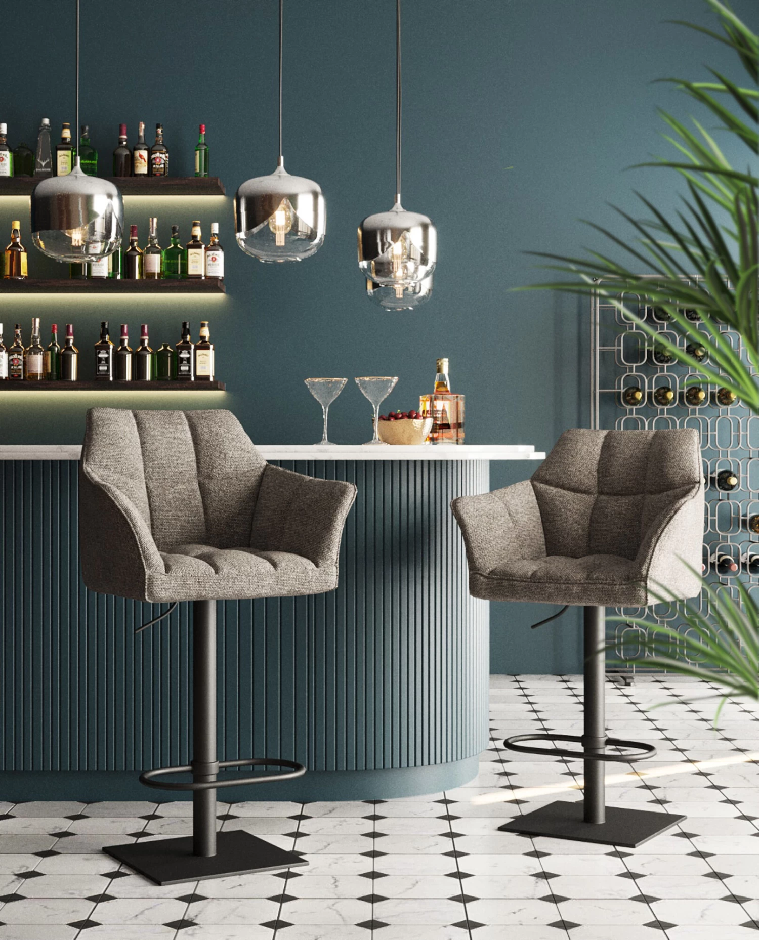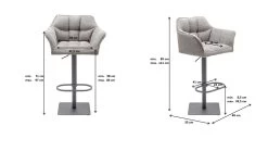 - Höhenverstellbarer und drehbarer Barhocker mit Armlehnen in Grau mit komfortabler Fußstütze