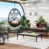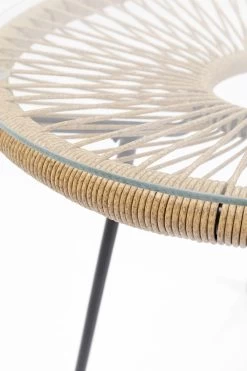 - Runder Beistelltisch mit Glasplatte, schwarzen stabilen Beinen aus Stahl und naturfarbenem Geflecht