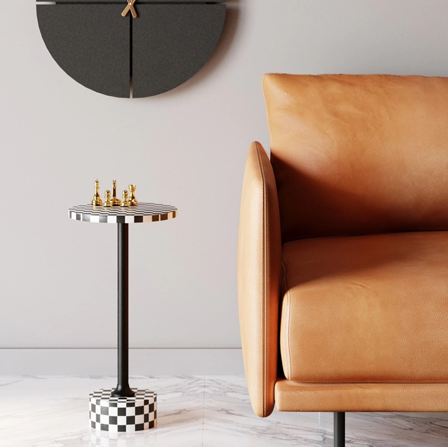 - Das handgearbeitetes Schachbrettmuster auf Sockel und Platte macht jedes Tischchen zum Unikat