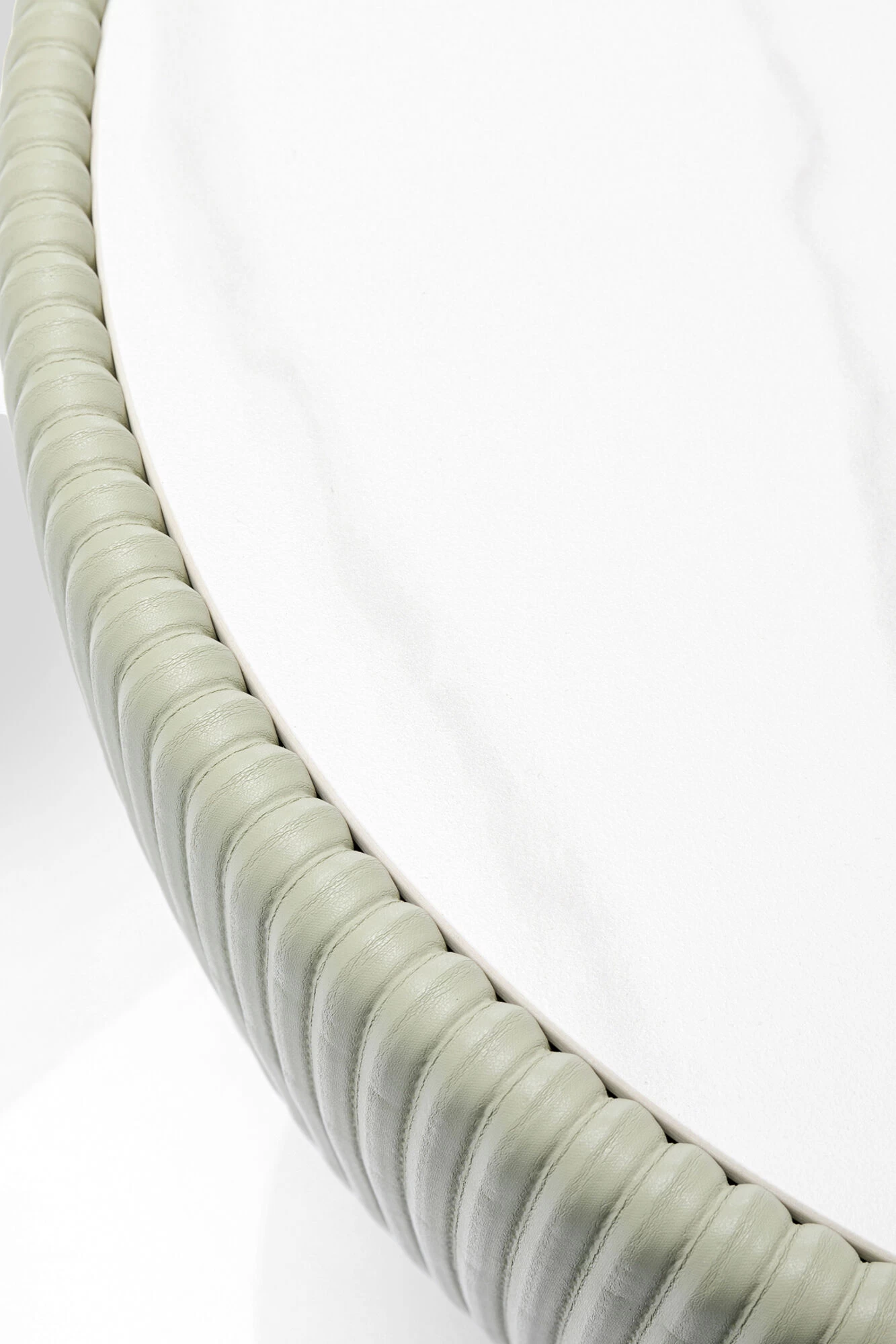 - Grüne Verkleidung mit gestepptem Bezug aus Kunstleder