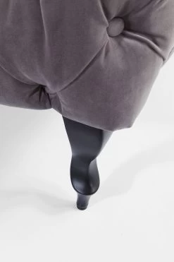 - Luxuriöses, silbergraues Polsterbett mit einem Samtbezug, umlaufender Kapitonierung und schwarzen Beinen aus Buchen-Massivholz