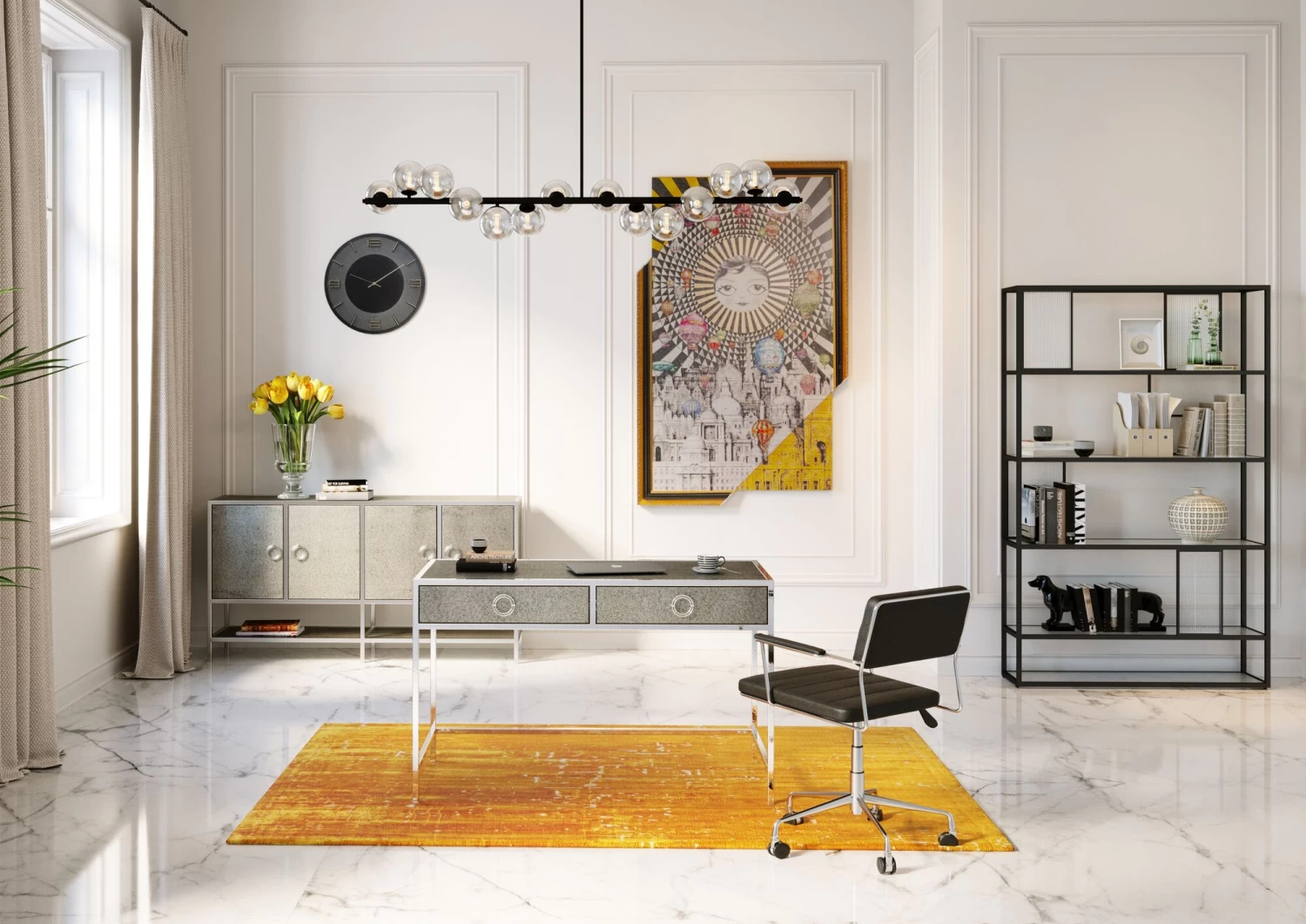 - Komfortabler BĂĽrostuhl in modernem Stil mit Anleihen aus dem Retro-Design