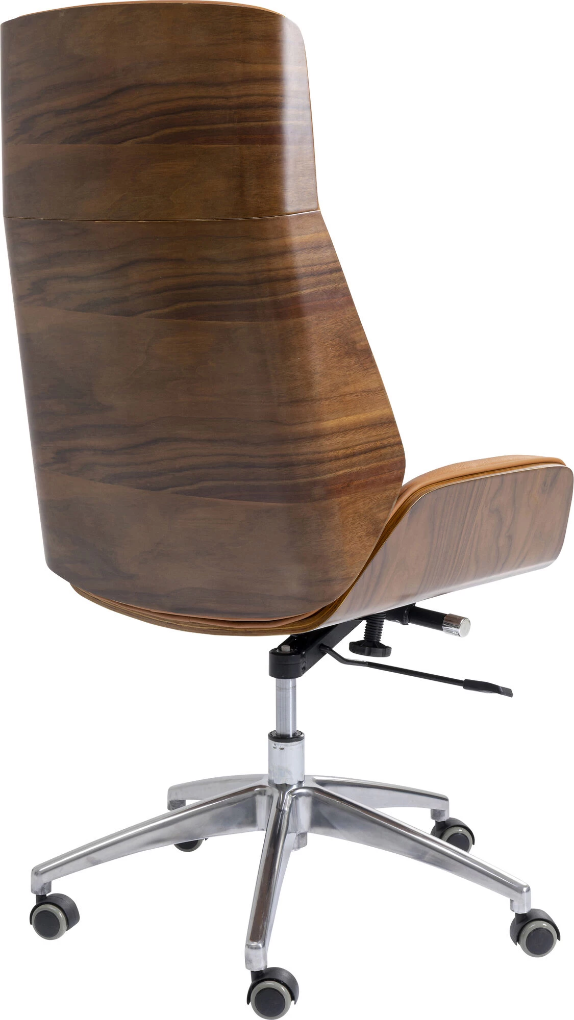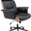 - Ausgesucht schöner Chefsessel: Ein Bürodrehstuhl im edlen Eschenholz Design und in Lederoptik