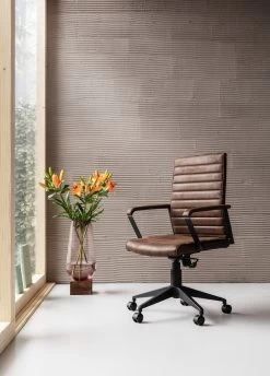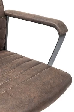 - Der Drehstuhl in Braun ist stufenlos per Gasdruckfeder höhenverstellbar, 360 Grad drehbar und verfügt über eine individuell einstellbare Wippfunktion