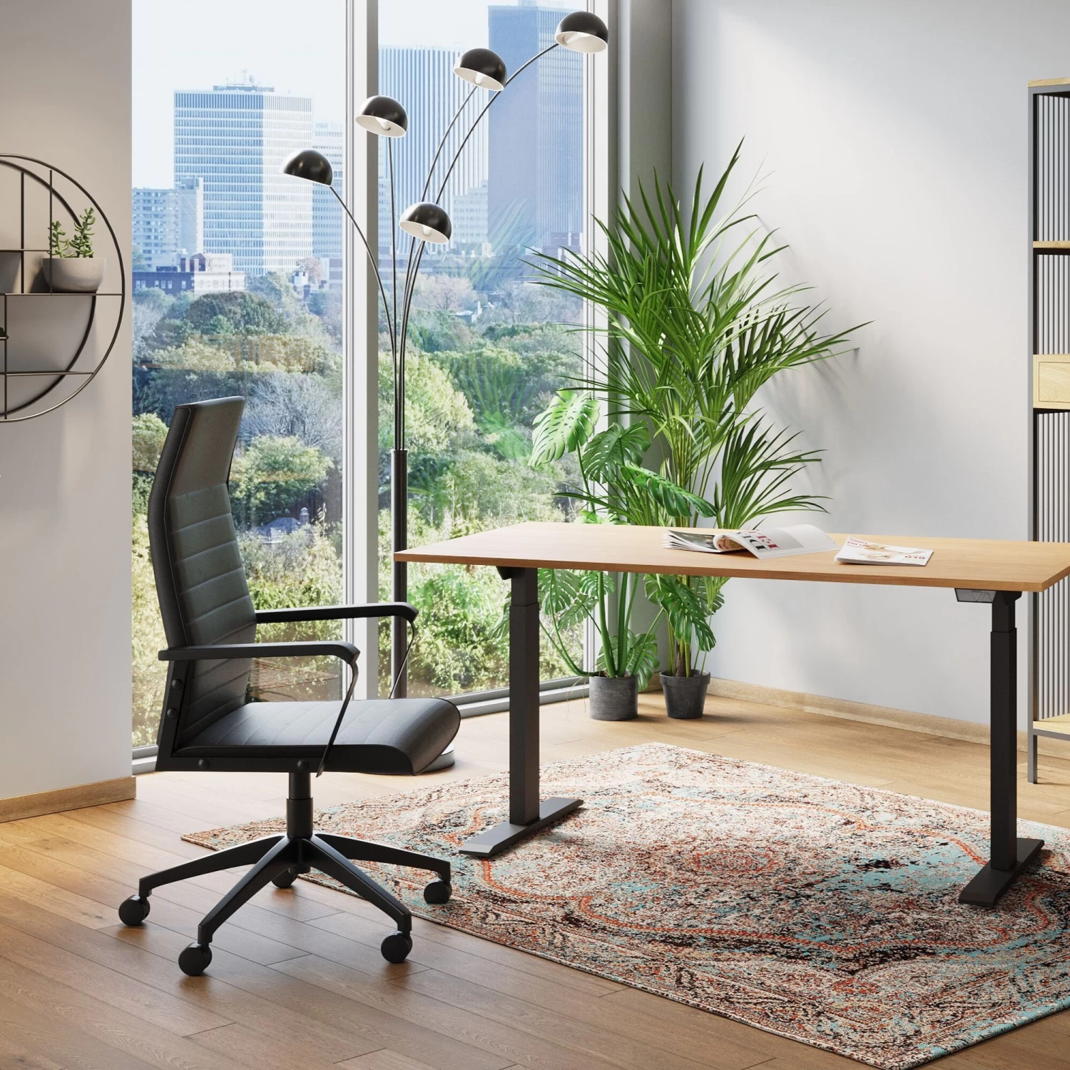- Der 5-Sternfuß des Büro-Drehstuhls aus Stahl sorgt jederzeit für Stabilität und Sicherheit, die Rollen machen ihn mobil