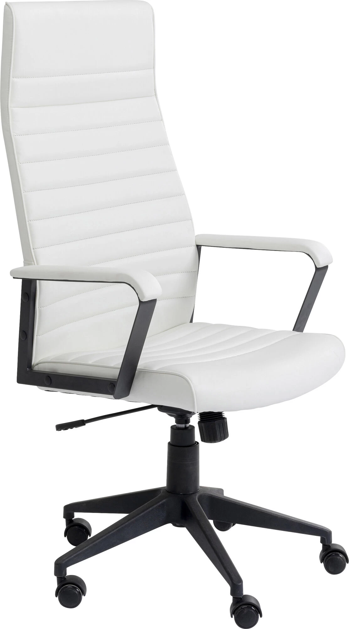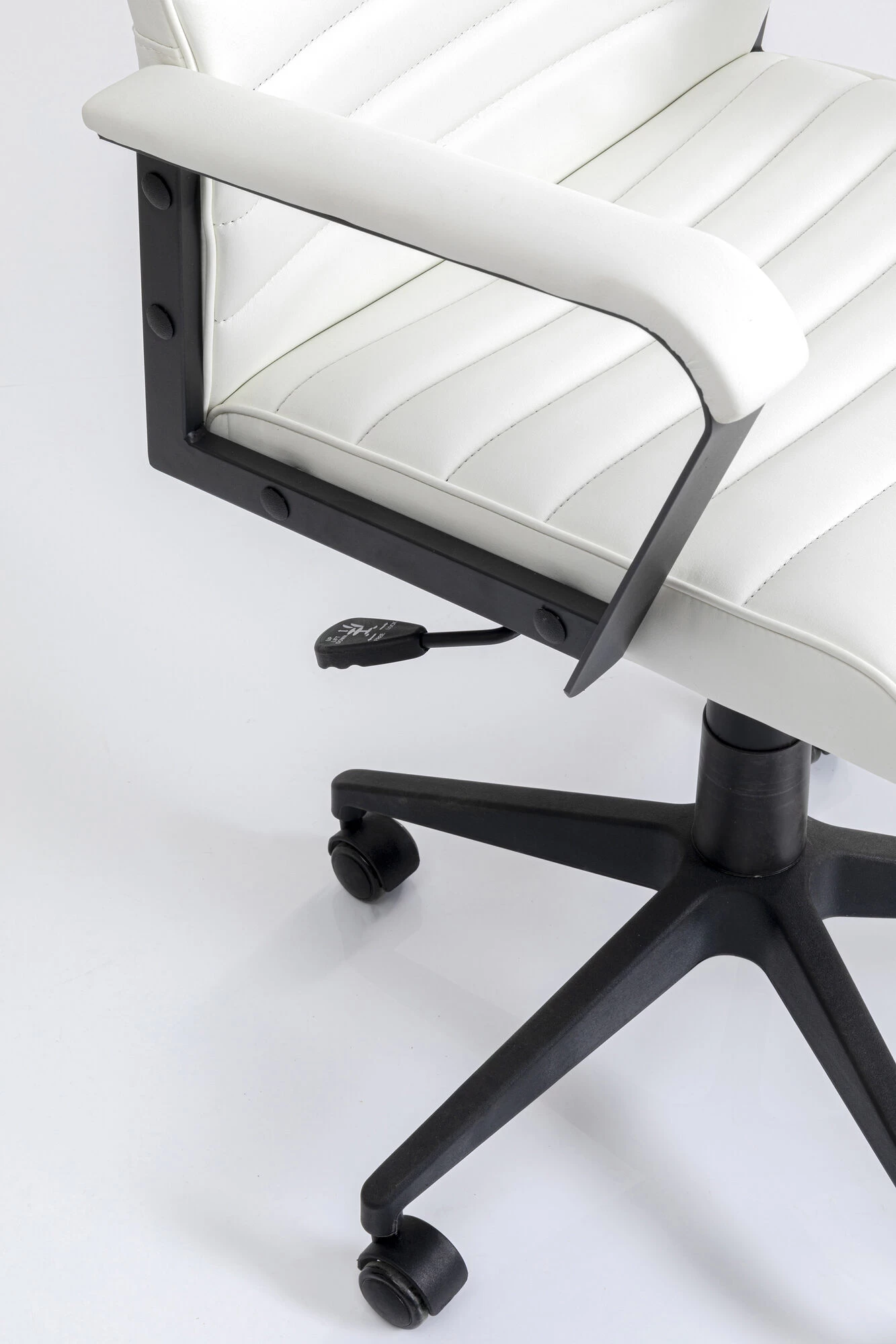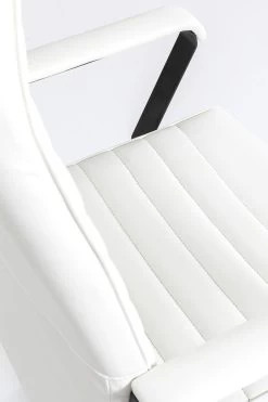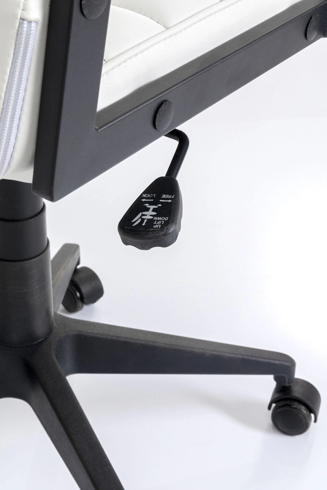 - Der Bürodrehstuhl in elegantem Weiß ist 360 Grad drehbar und dank Gasdruckfeder stufenlos höhenverstellbar