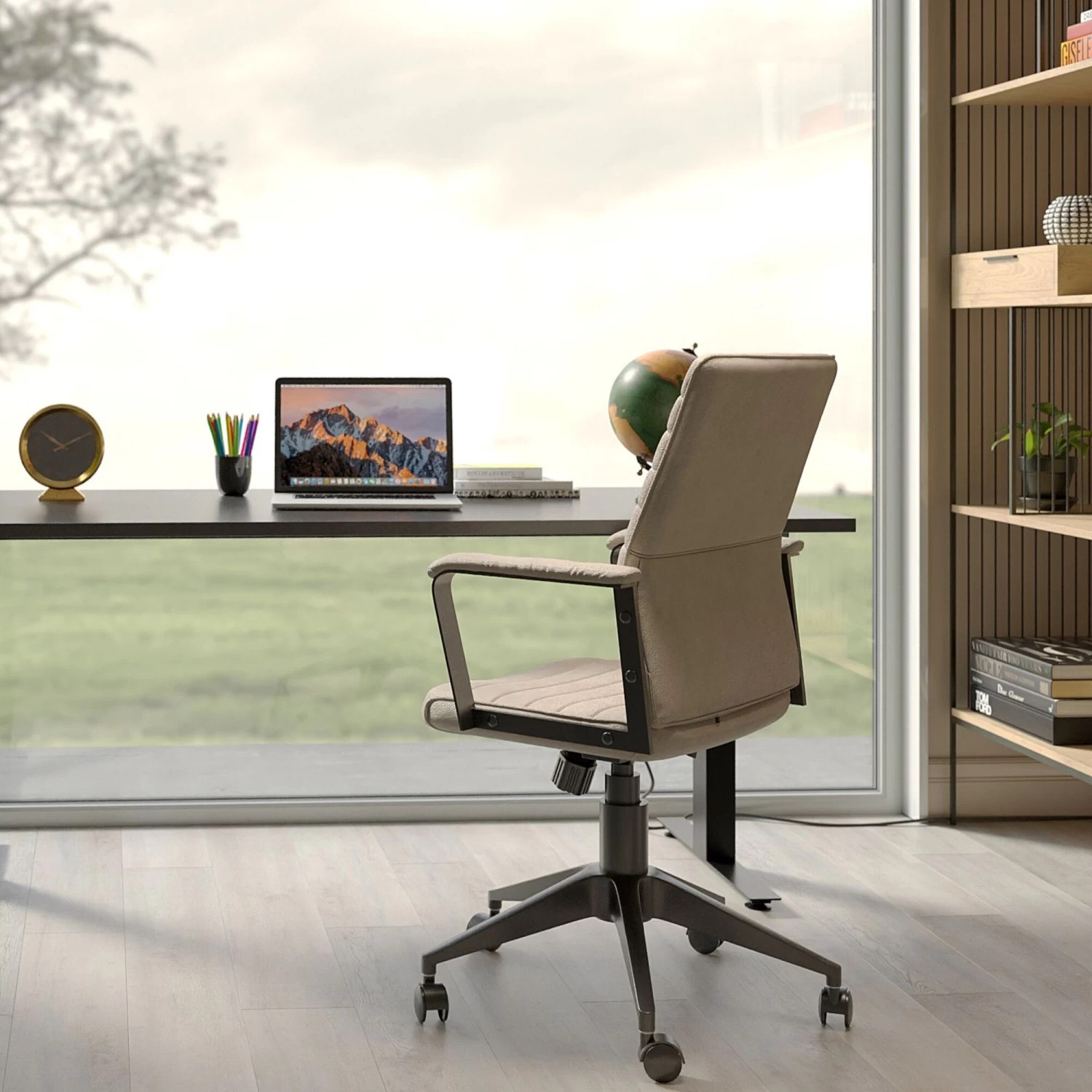 - Der 5-Sternfuß des Büro-Drehstuhls aus Stahl sorgt jederzeit für Stabilität und Sicherheit, die Rollen machen ihn mobil