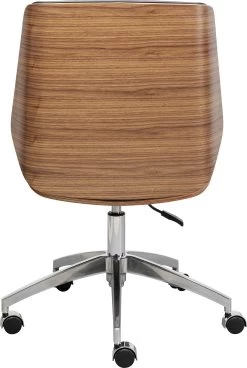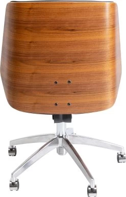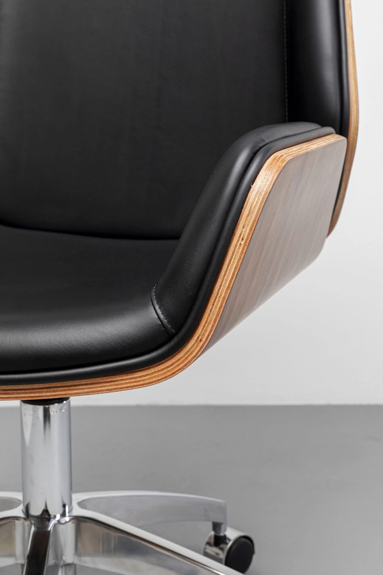 - Schwarzer BĂĽrostuhl mit Rollen in moderner Schalenform mit echtem Walnuss-Holz
