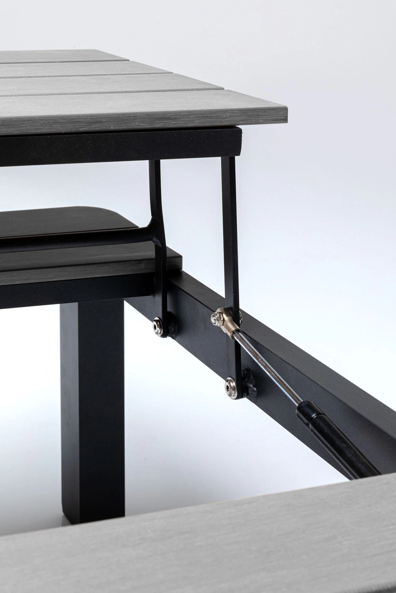 - Durch einfaches Hochklappen verwandelt sich der Outdoor Beistelltisch zum Esstisch mit 4 Sitzgelegenheiten