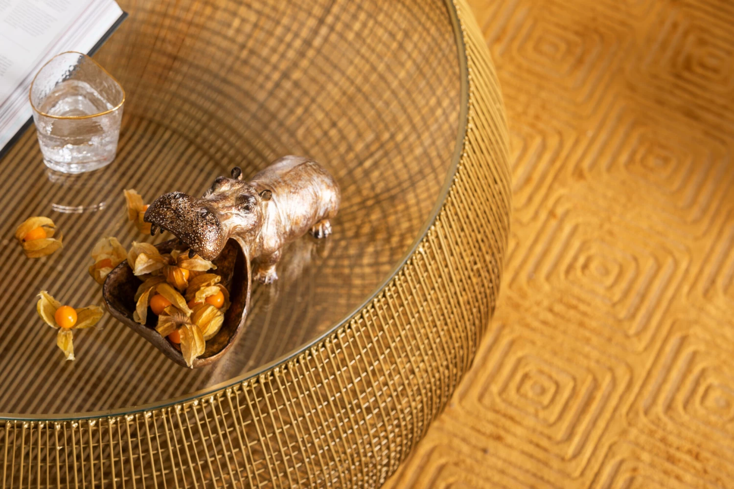 - Der goldene Tisch schenkt jedem Raum eine glamouröse Note