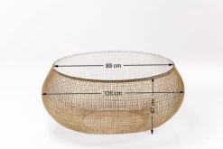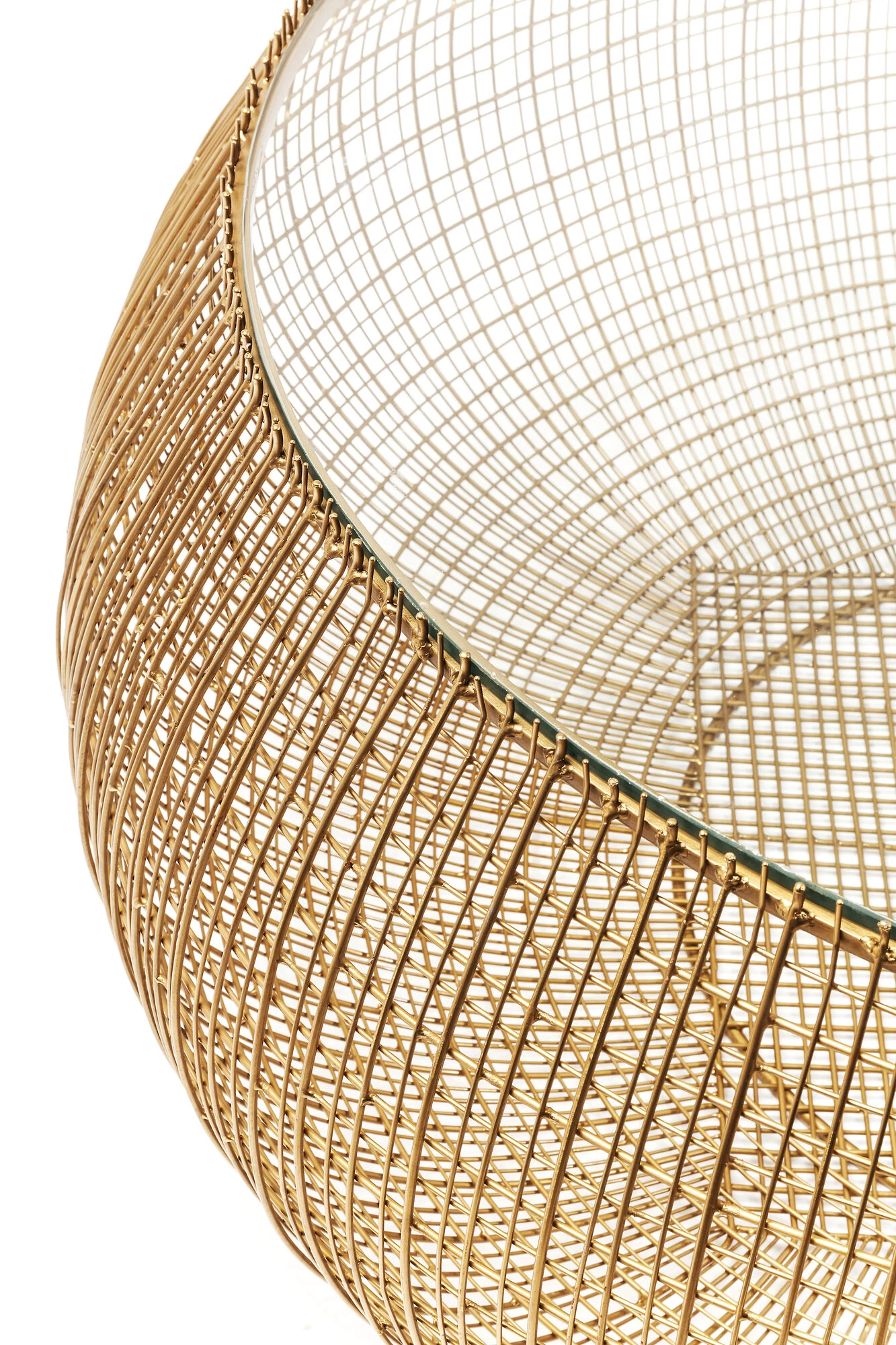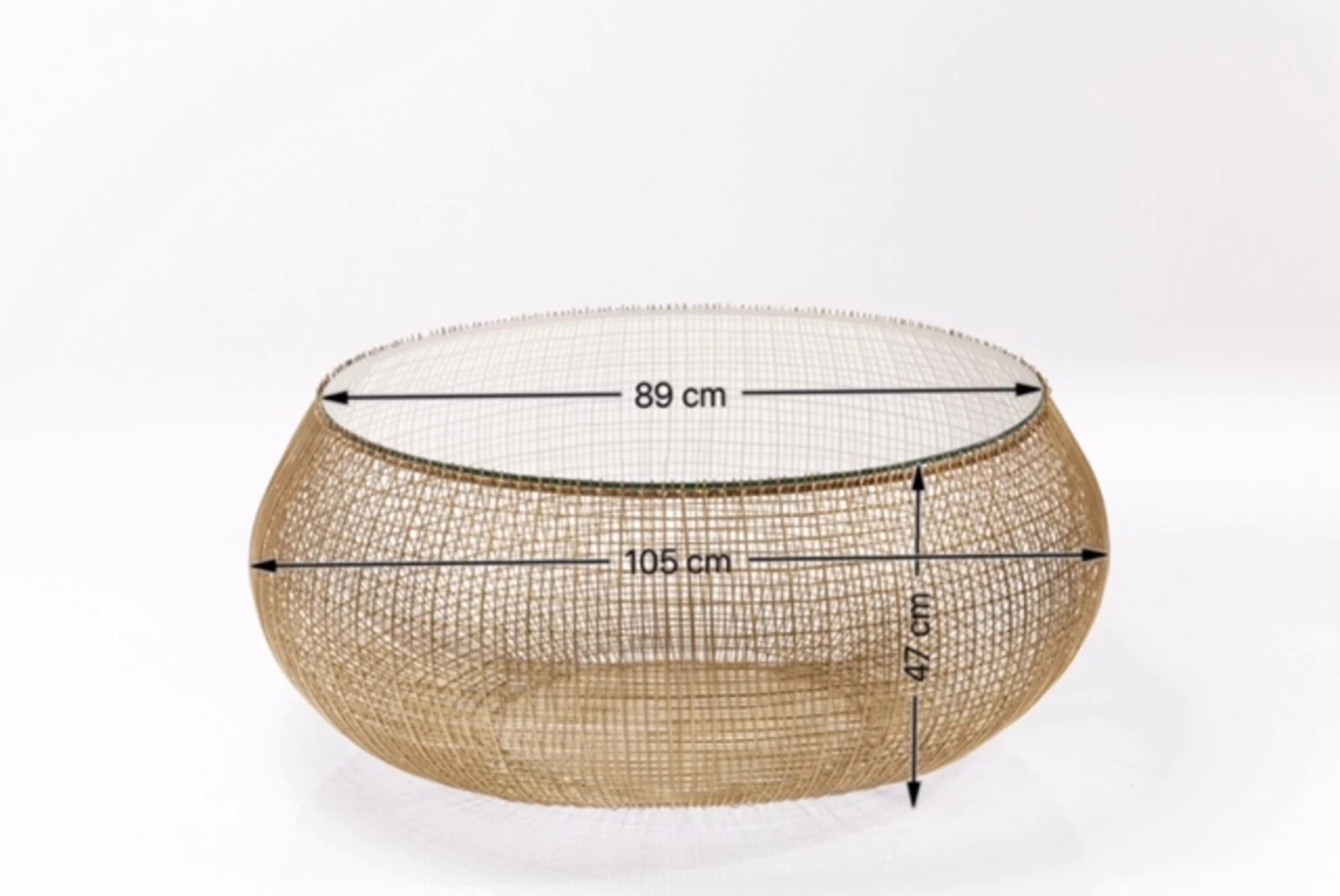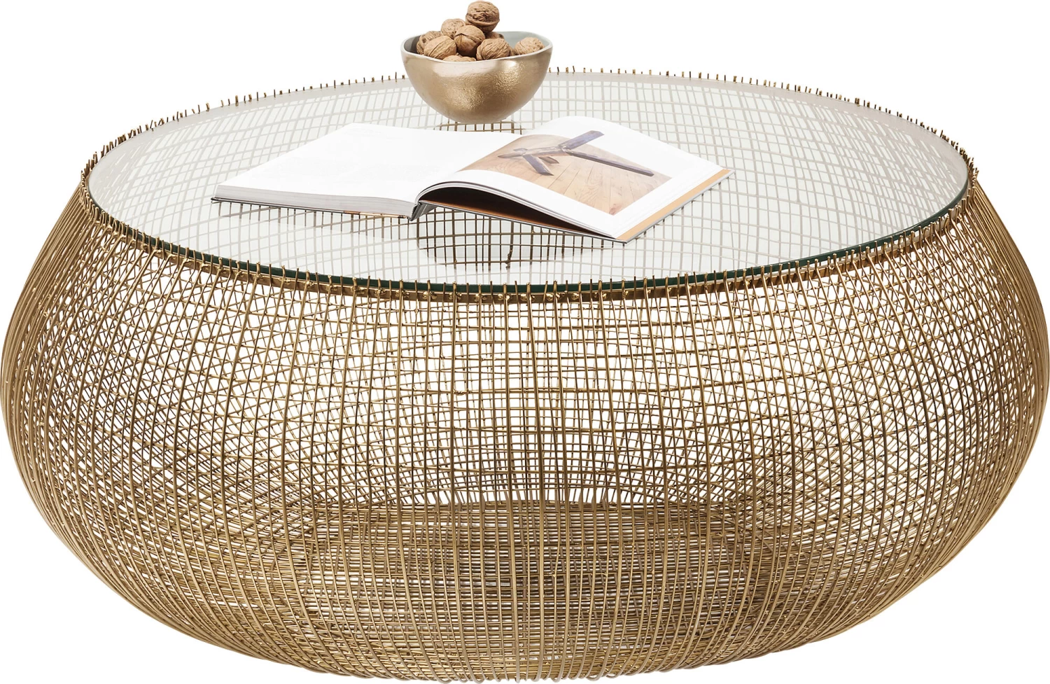- Großer, runder Couchtisch mit goldenem Drahtgestell und sechs Millimeter dicker Sicherheitsglas-Platte