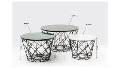 - Das grafische Stahl-Gestell in Schwarz verleiht dem Beistelltisch-Set optisch Leichtigkeit