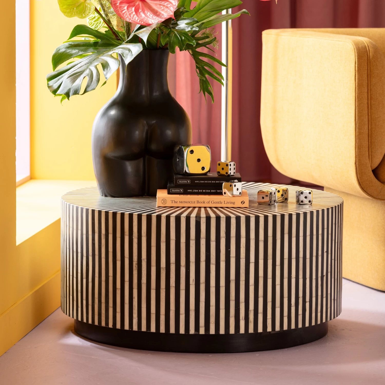 - Runder Couchtisch in Schwarz und WeiĂ, 35 x 75 x 75 Zentimeter (H/B/T)