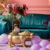 - Der große Couchtisch lässt sich schön zu Samtsofas und -sesseln sowie zu flauschigen Teppichen kombinieren