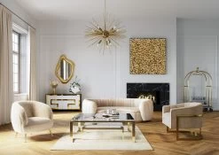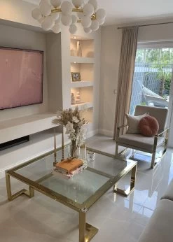 - Edel: Couchtisch aus Glas mit goldfarbenem Gestell