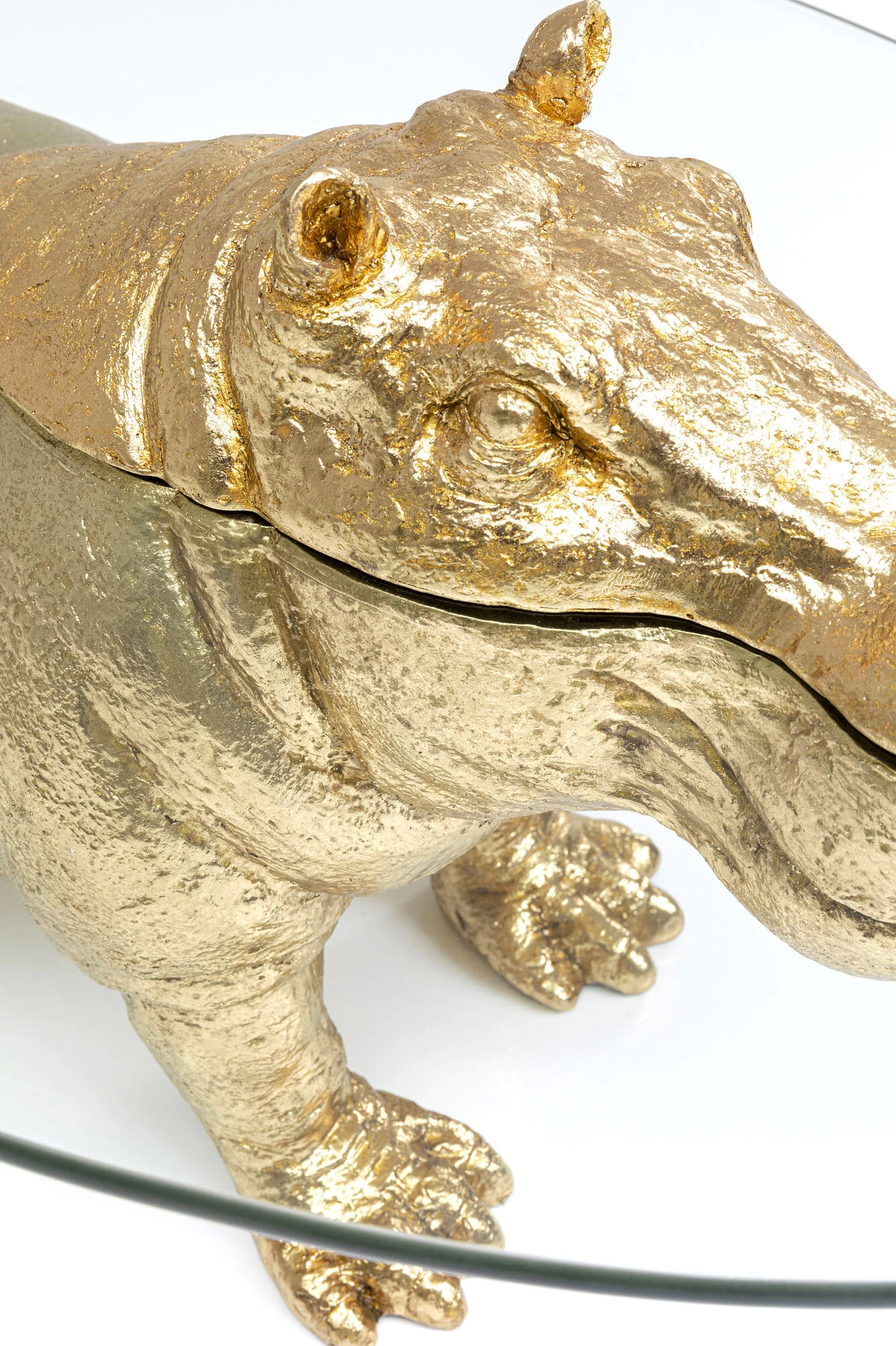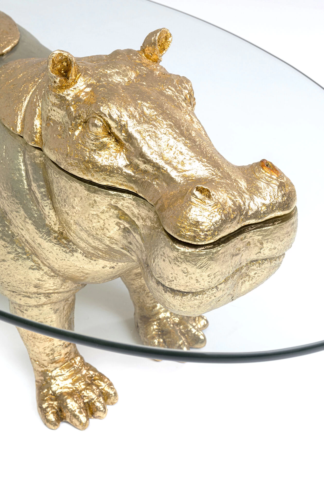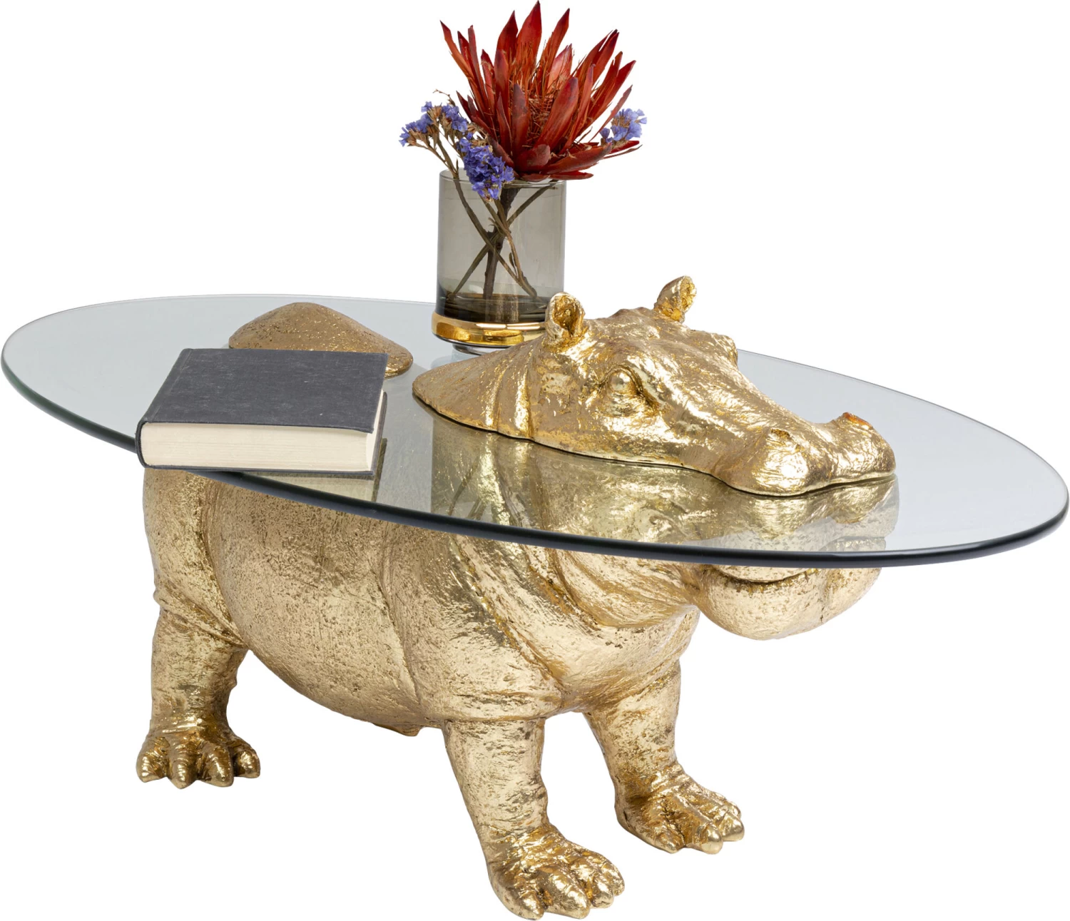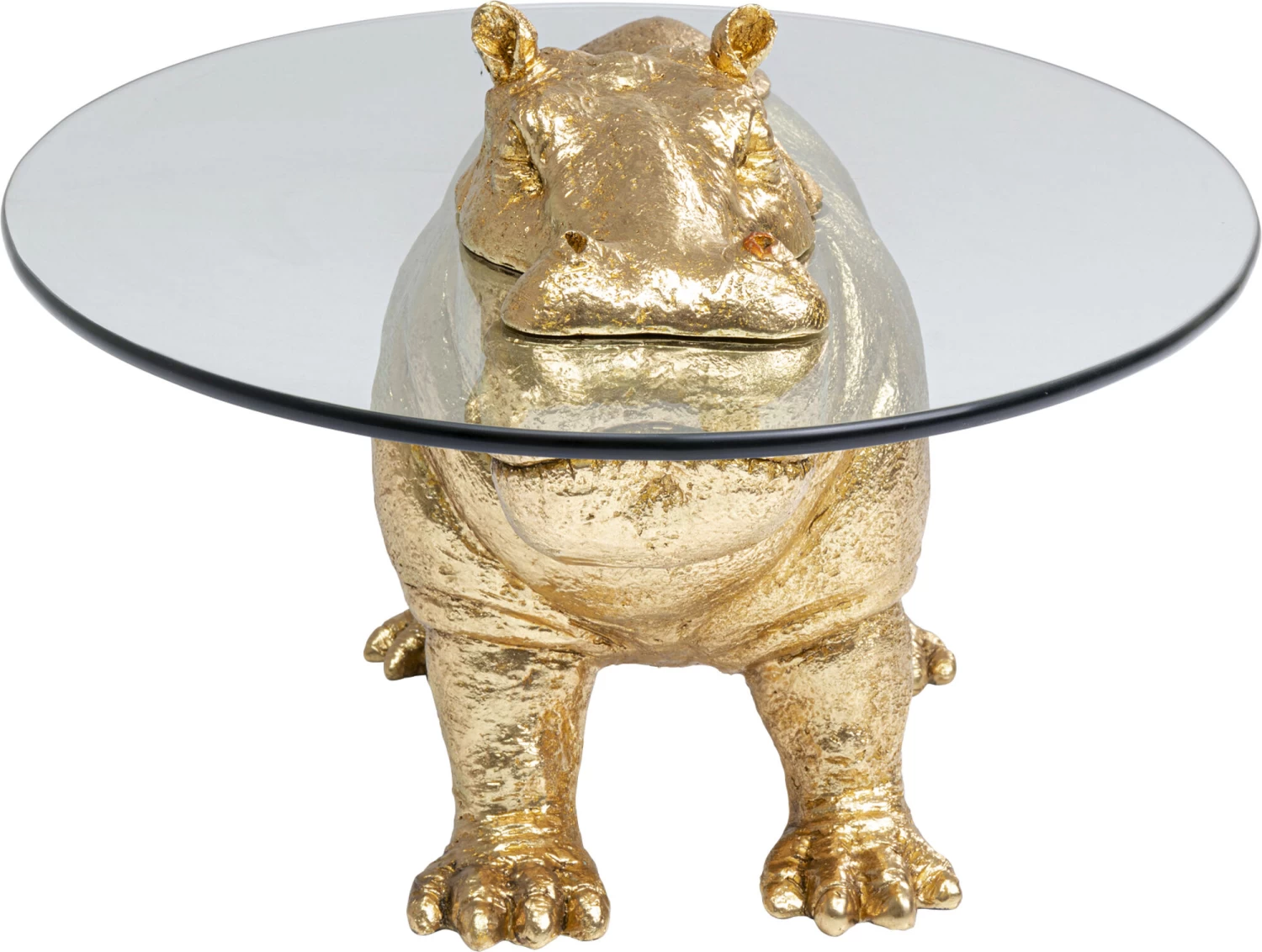 - Das goldige Nilpferd macht diesen Wohnzimmer-Tisch aus Glas zum Eyecatcher