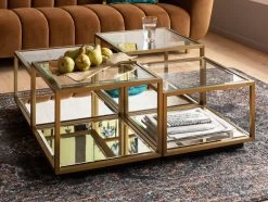 - Hochwertiges, goldfarbenes Set aus vier quadratischen Couchtischen in zwei verschiedenen Höhen