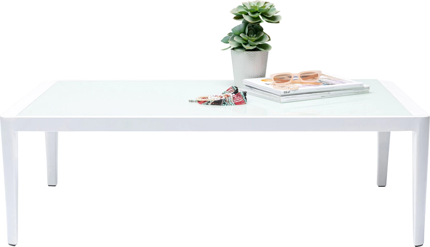 - Rechteckiger, niedriger Gartentisch in Weiß