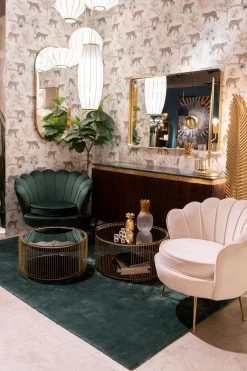 - Set aus zwei runden, goldfarbenen Beistelltischen, groß: 33,5xØ69 Zentimeter, klein: 31,5xØ59 Zentimeter