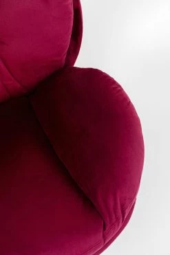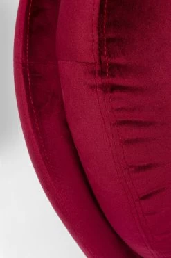- Der dunkelrote Bezug in Samtoptik ist großzügig verarbeitet, kurvige Ziernähte betonen das Retro-Design