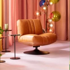 - Ledersessel in Braun mit 360 Grad Drehfunktion, 74 x 72 x 78 Zentimeter (H/B/T)
