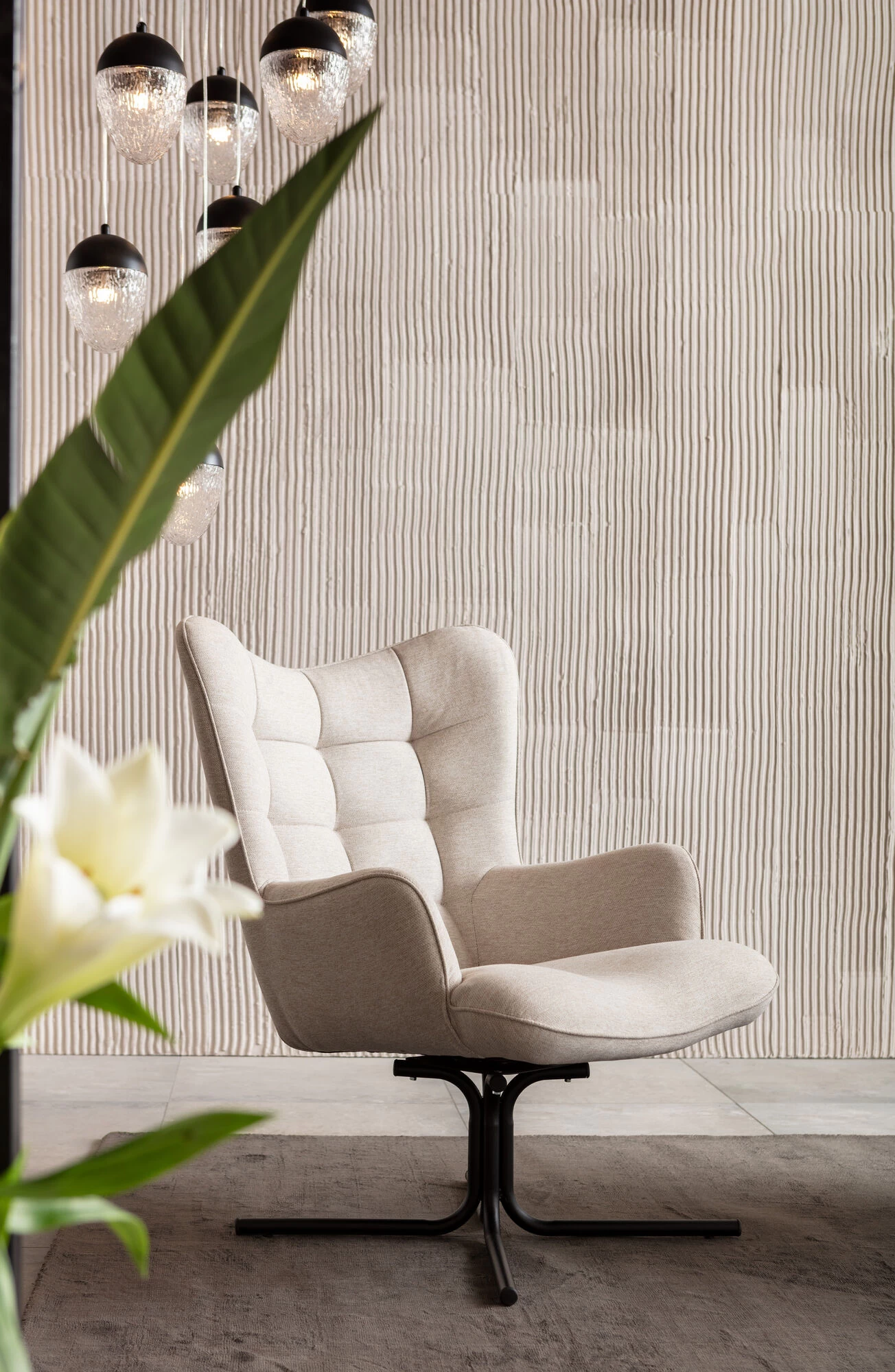 - Beiger Drehsessel mit OEKO-TEX zertifiziertem Stoffbezug aus Chenille-Gewebe