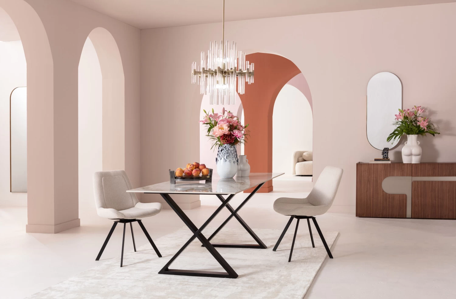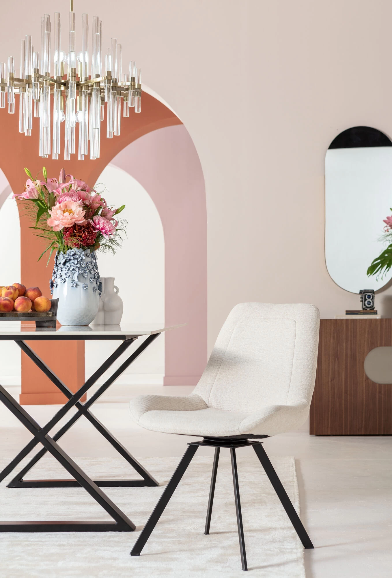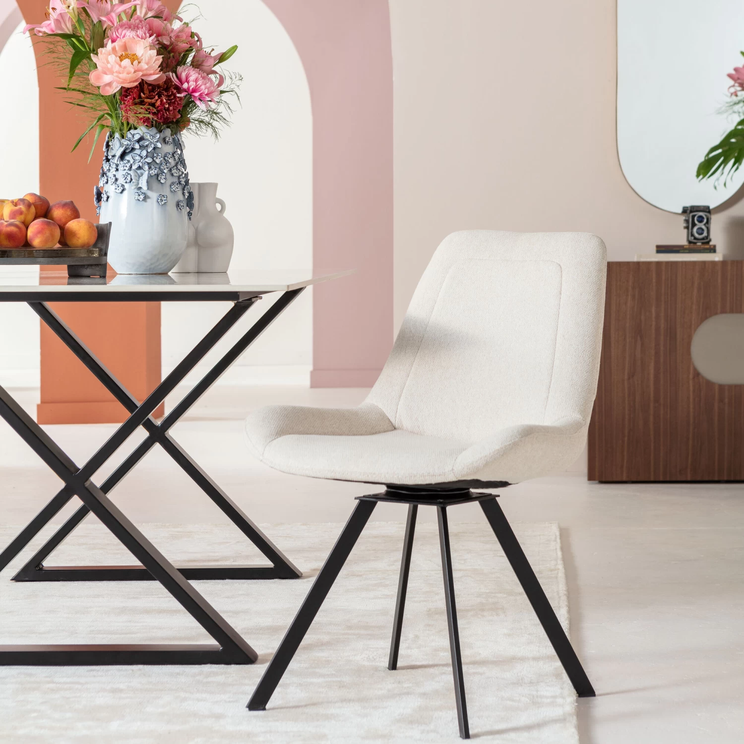 - Geradliniger Drehstuhl mit pflegeleichtem Chenille-Bezug in Beige