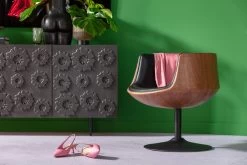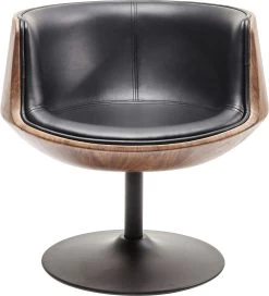 - Club-Drehsessel in schwarzer Lederoptik und mit einer Schale, die auĂźen mit edlem Walnussfurnier versehen ist