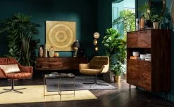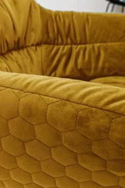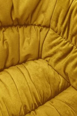 - Der knautschige Look der curryfarbenen Polsterung und die horizontalen Nähte wirken bei diesem Drehsessel so lässig