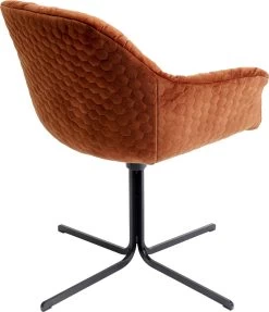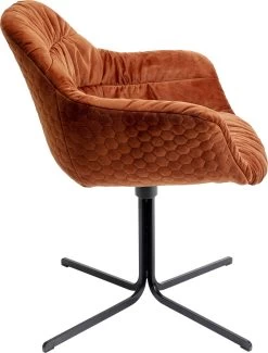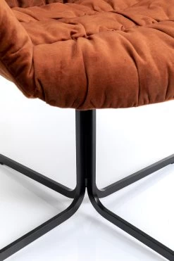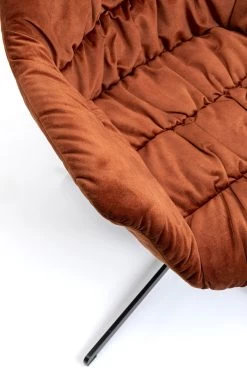 - Der knautschige Look der rostroten Polsterung und die horizontalen Nähte wirken bei diesem Drehsessel so lässig