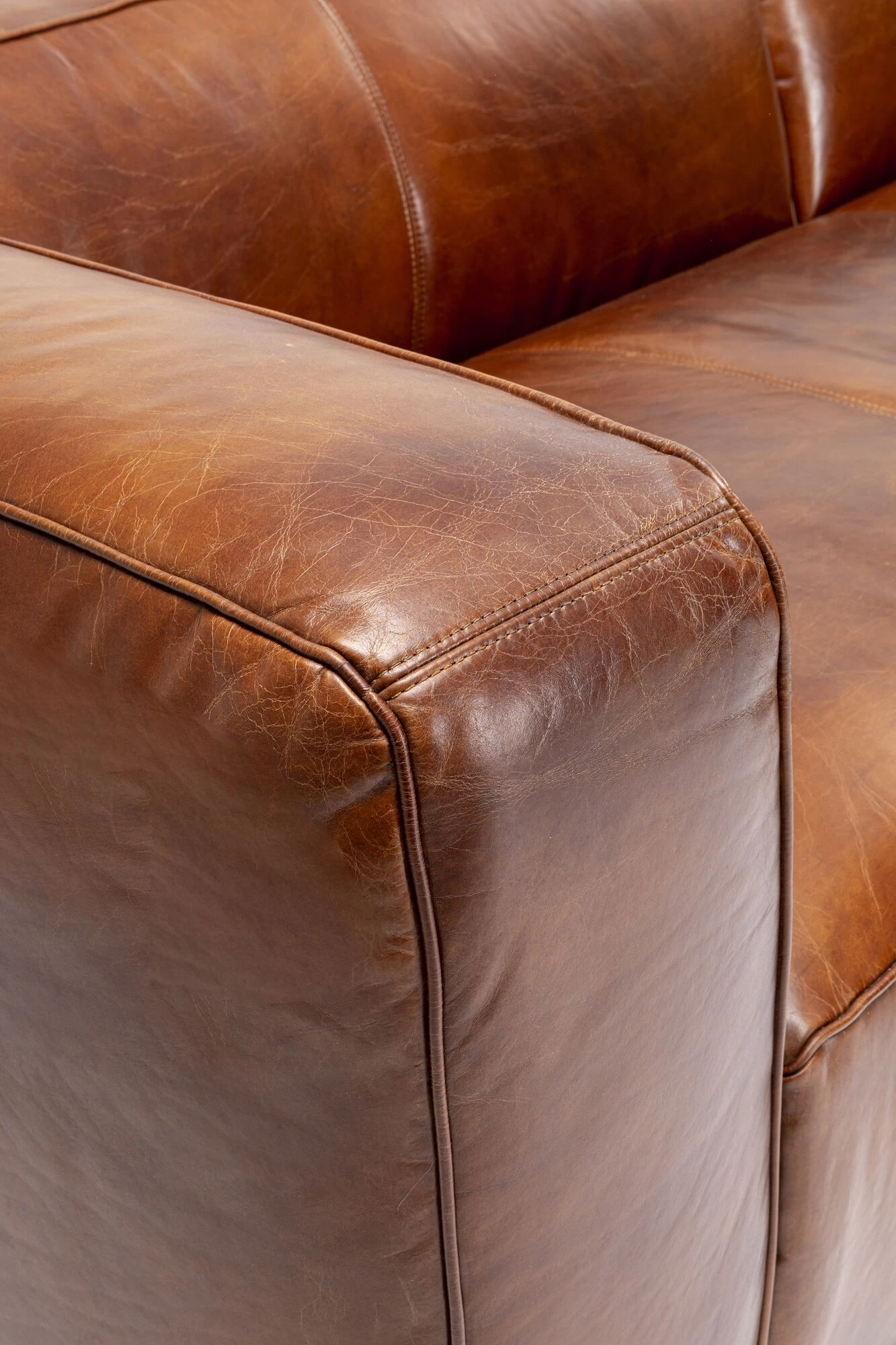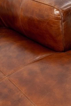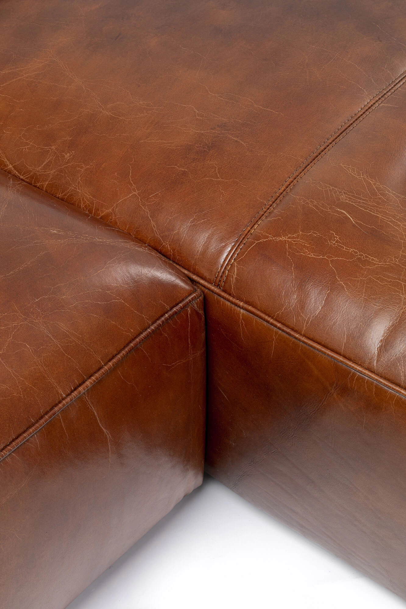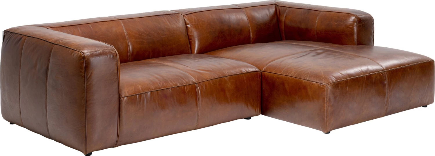 - Leder-Sofa: Die Eck-Couch trägt einen Bezug aus gedecktem Leder. Dieses Material fühlt sich besonders glatt an und lässt sich einfach reinigen