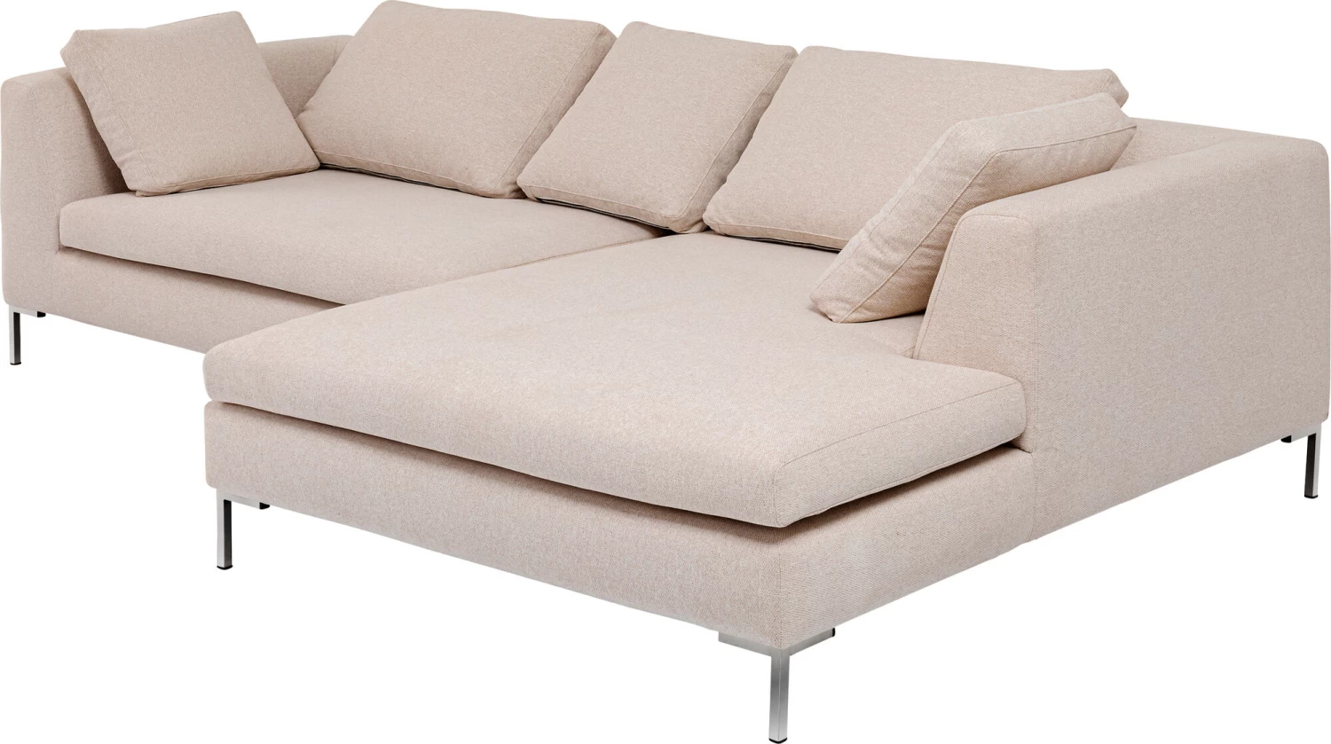 - Ecksofa in der Farbe Beige inklusive 5 Kissen fĂĽr maximalen Sitzkomfort und viel Platz zum Kuscheln