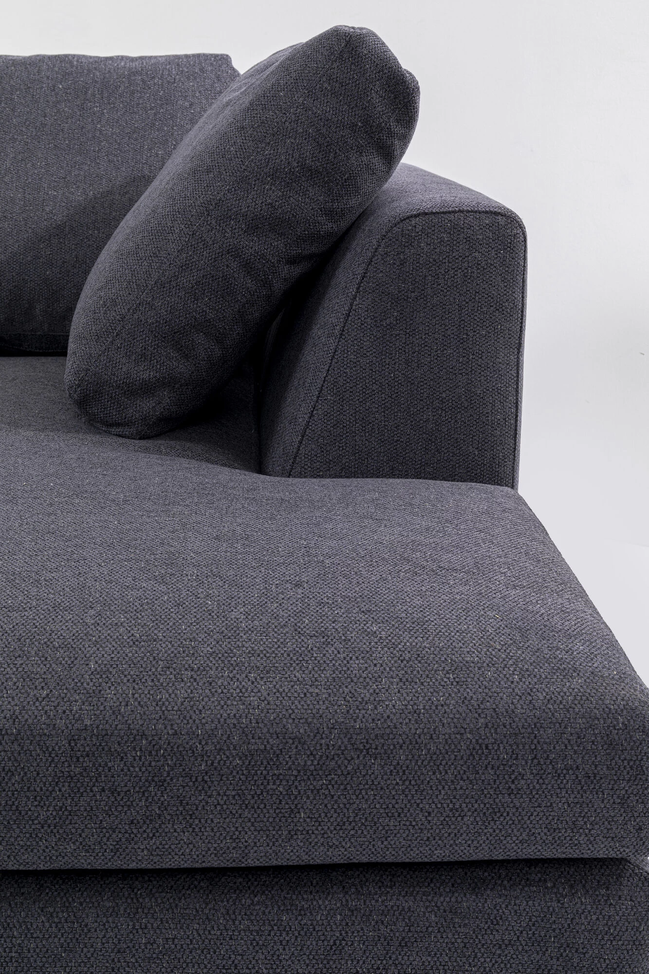- Ecksofa in dunklem Grau inklusive fĂĽnf Kissen fĂĽr maximalen Sitzkomfort
