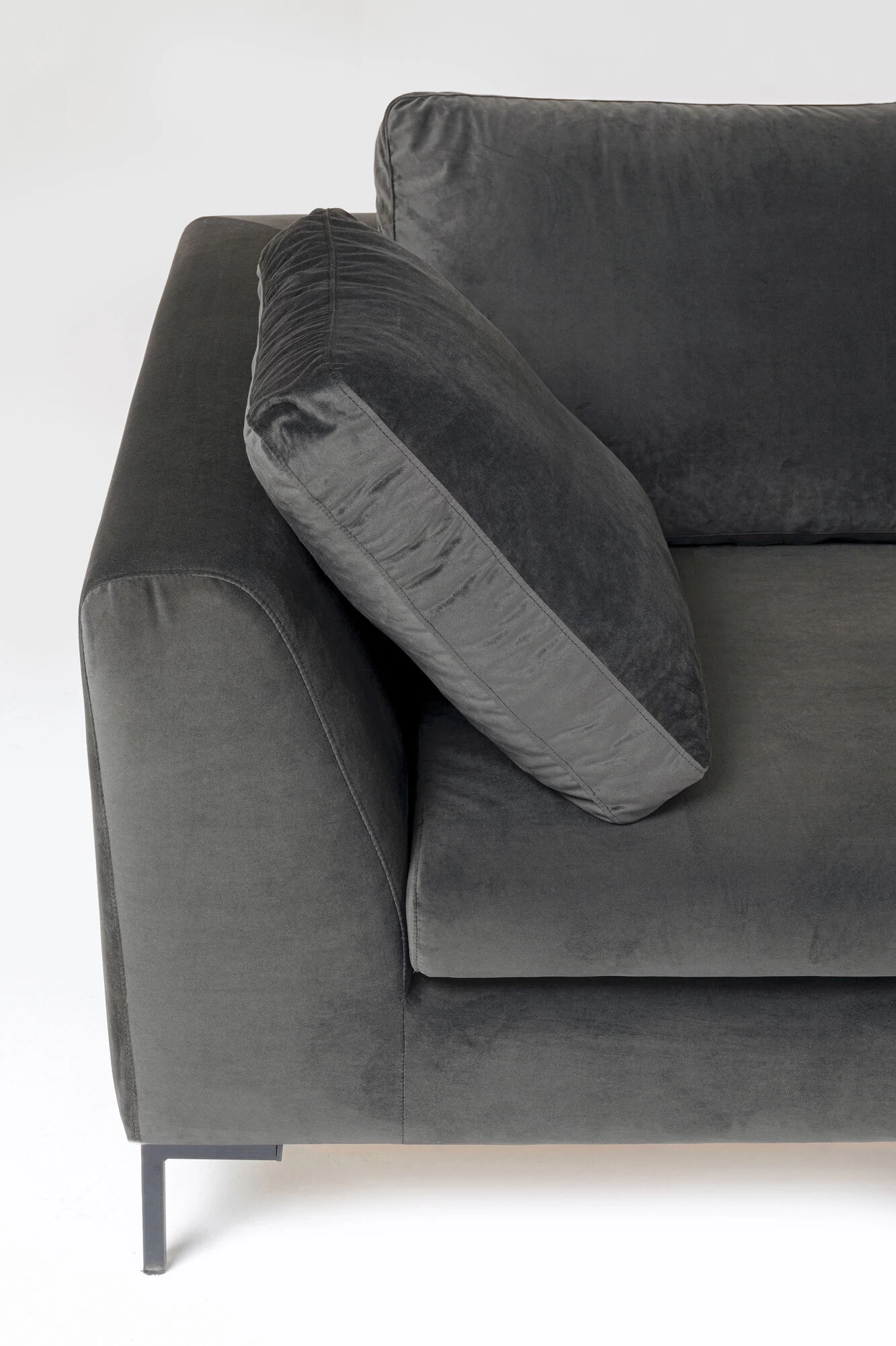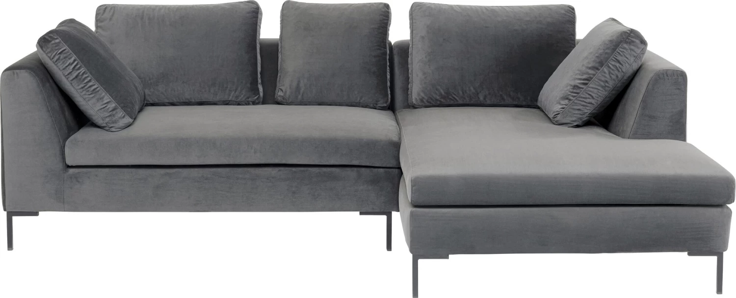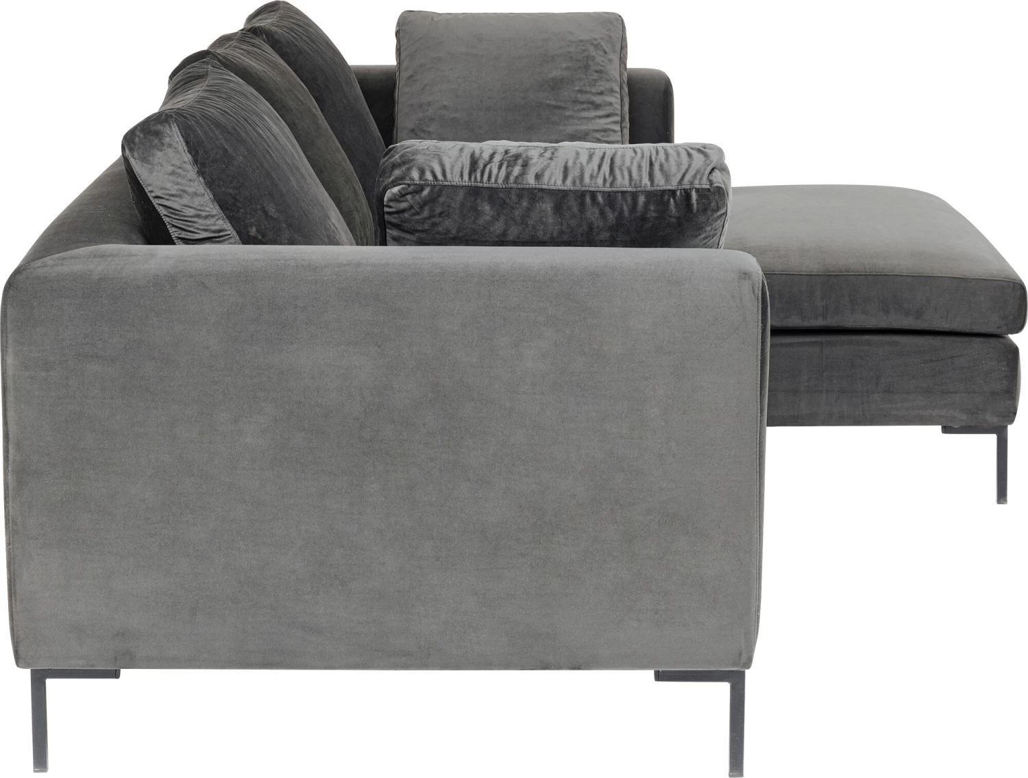 - GemĂĽtliches Ecksofa in Grau mit Ottomane rechts im eleganten Samt-Look