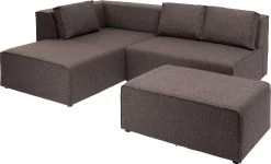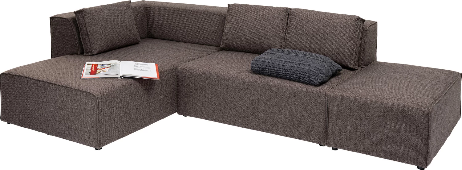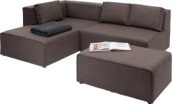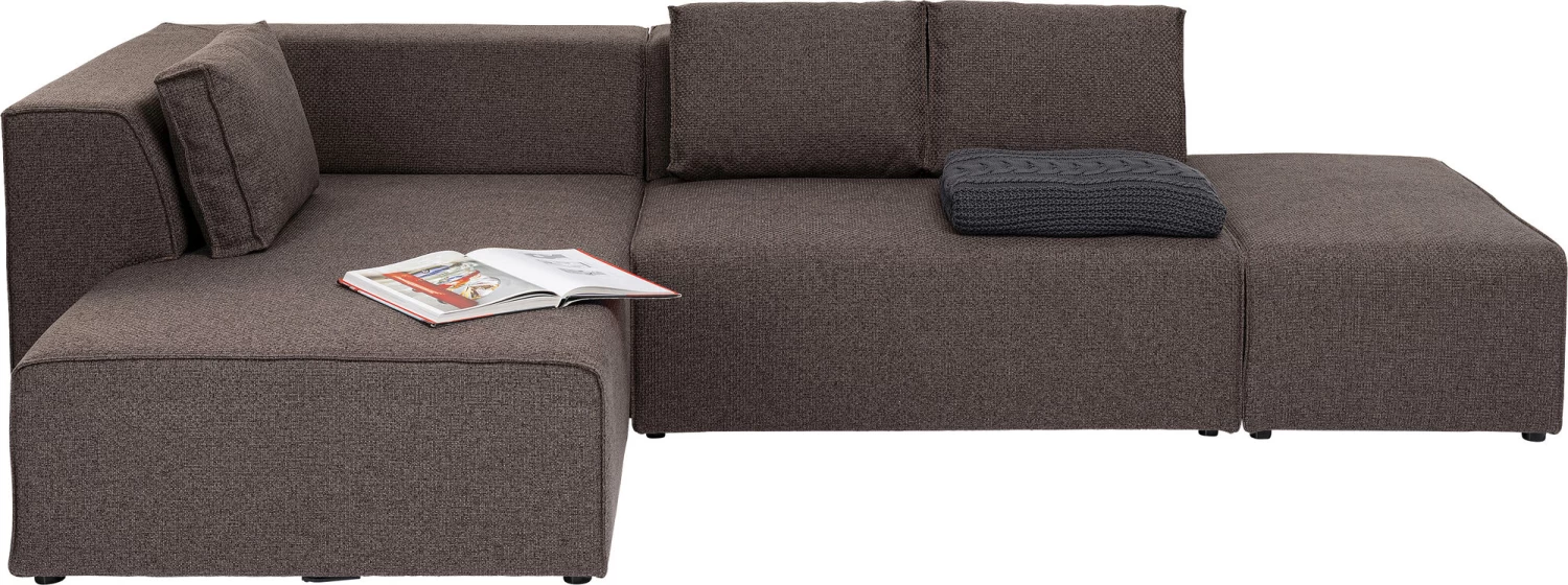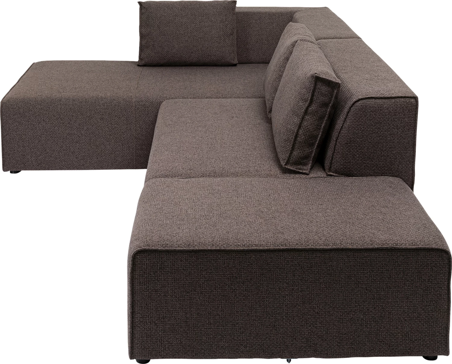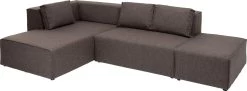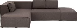 - GroĂźzĂĽgiges Ecksofa mit mobilem Hockerelement, Ottomane links. Drei gleichfarbige, rechteckige Kissen im Lieferumfang enthalten