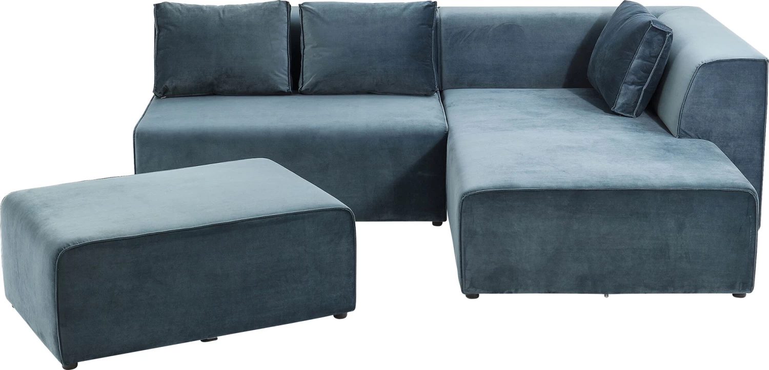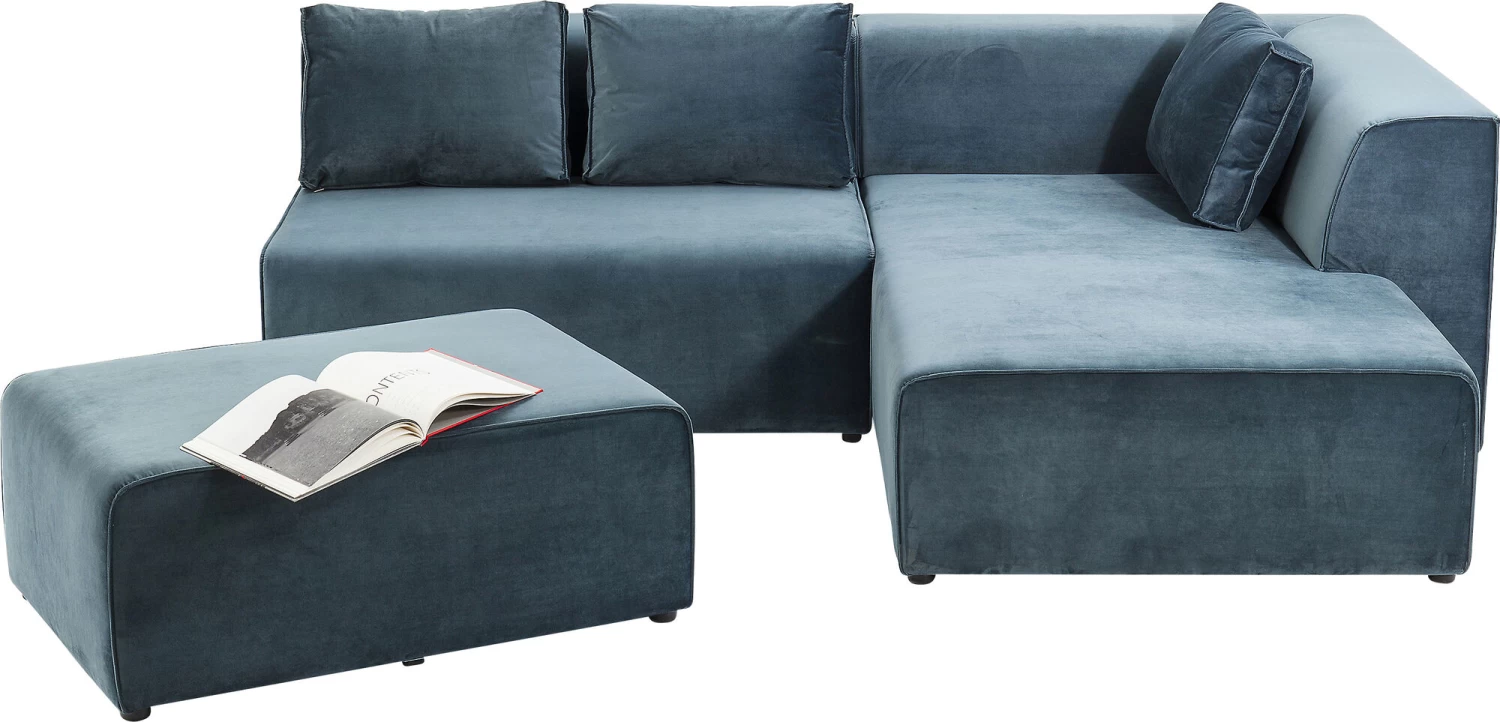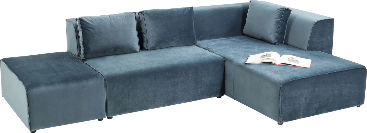 - Das blaue Ecksofa aus unserem Modulsystem Infinity bietet Platz für viele Gäste