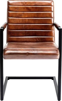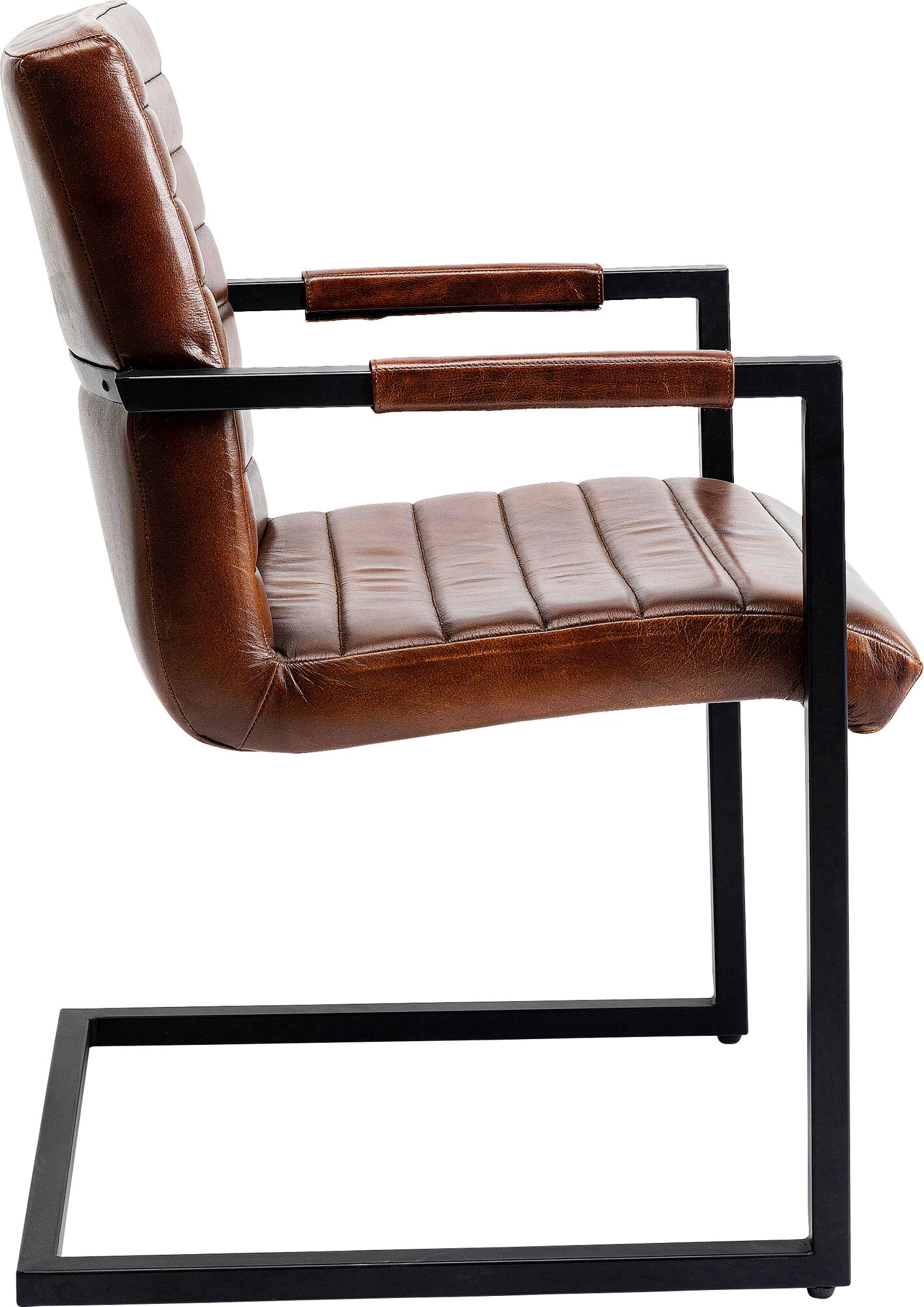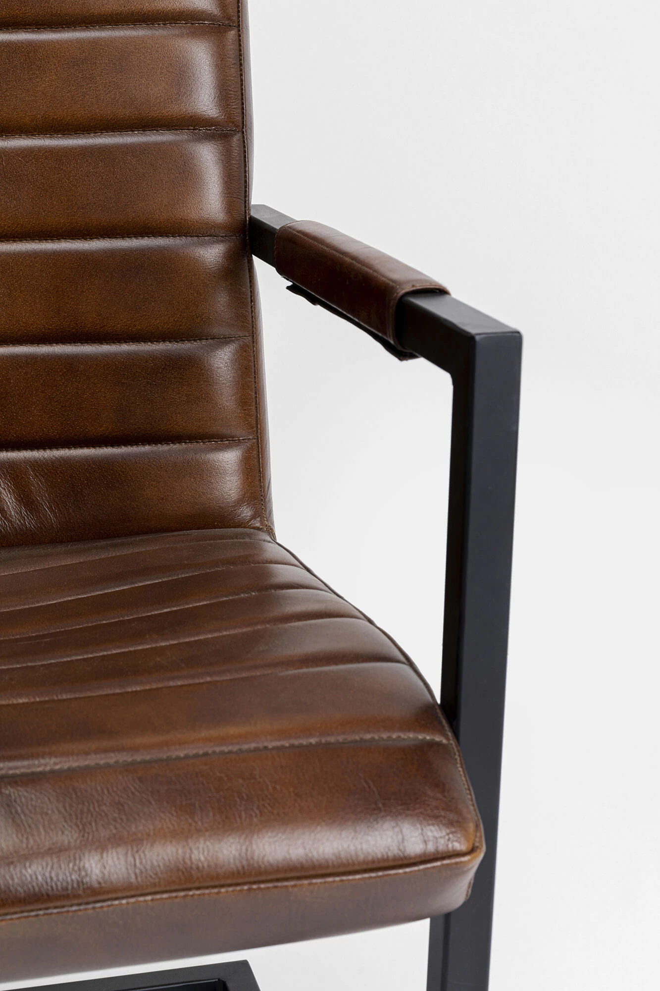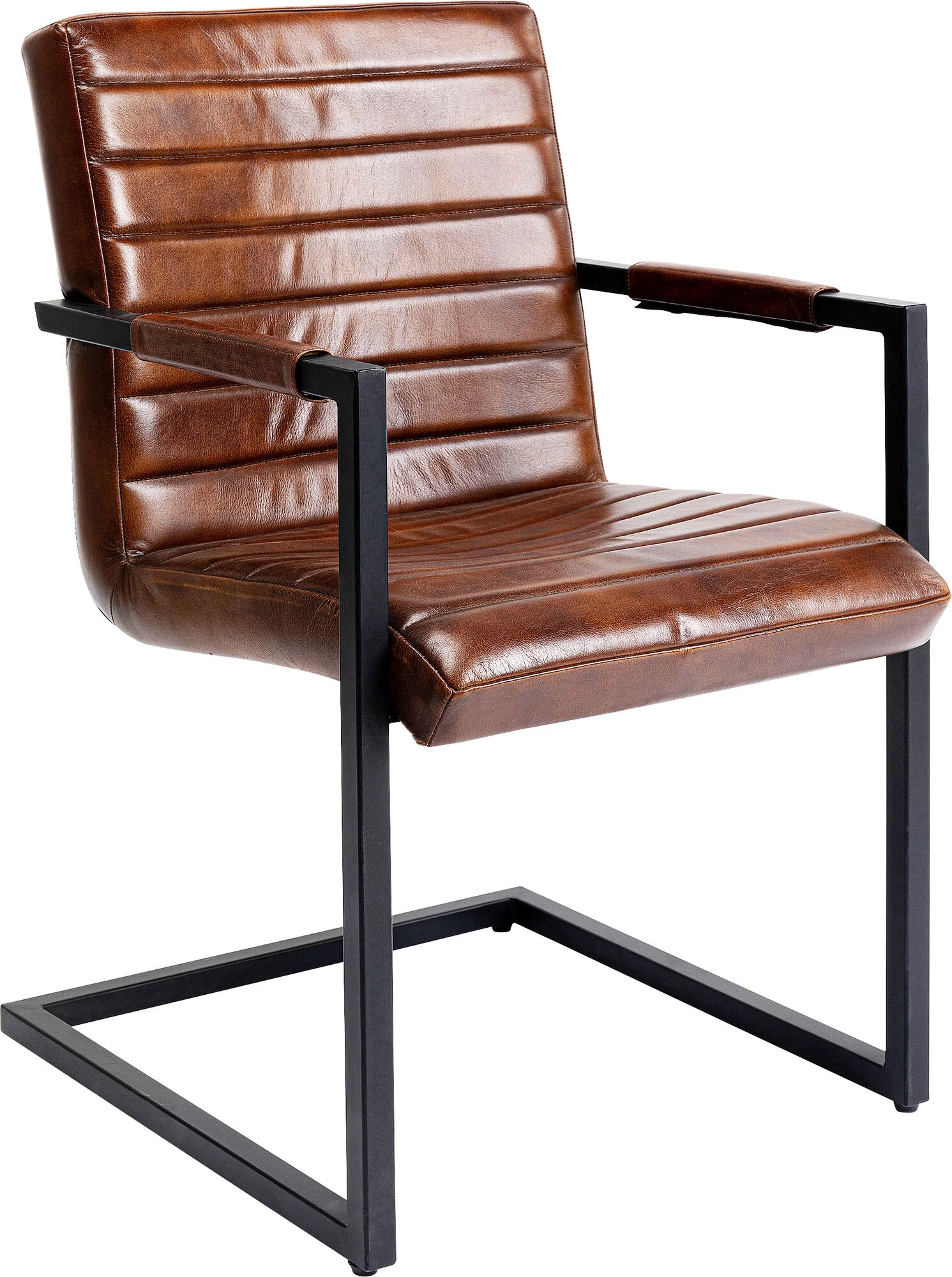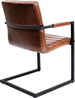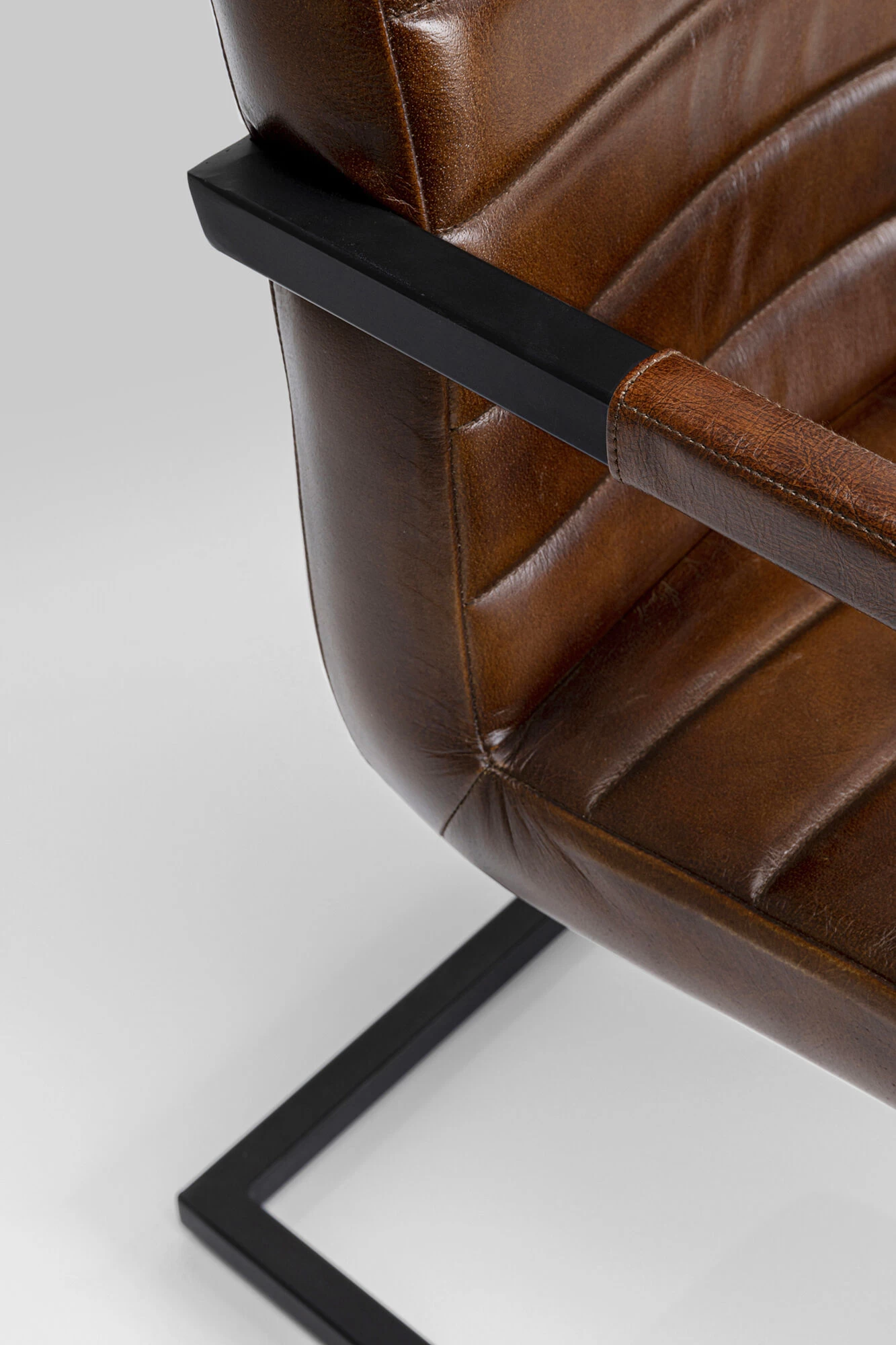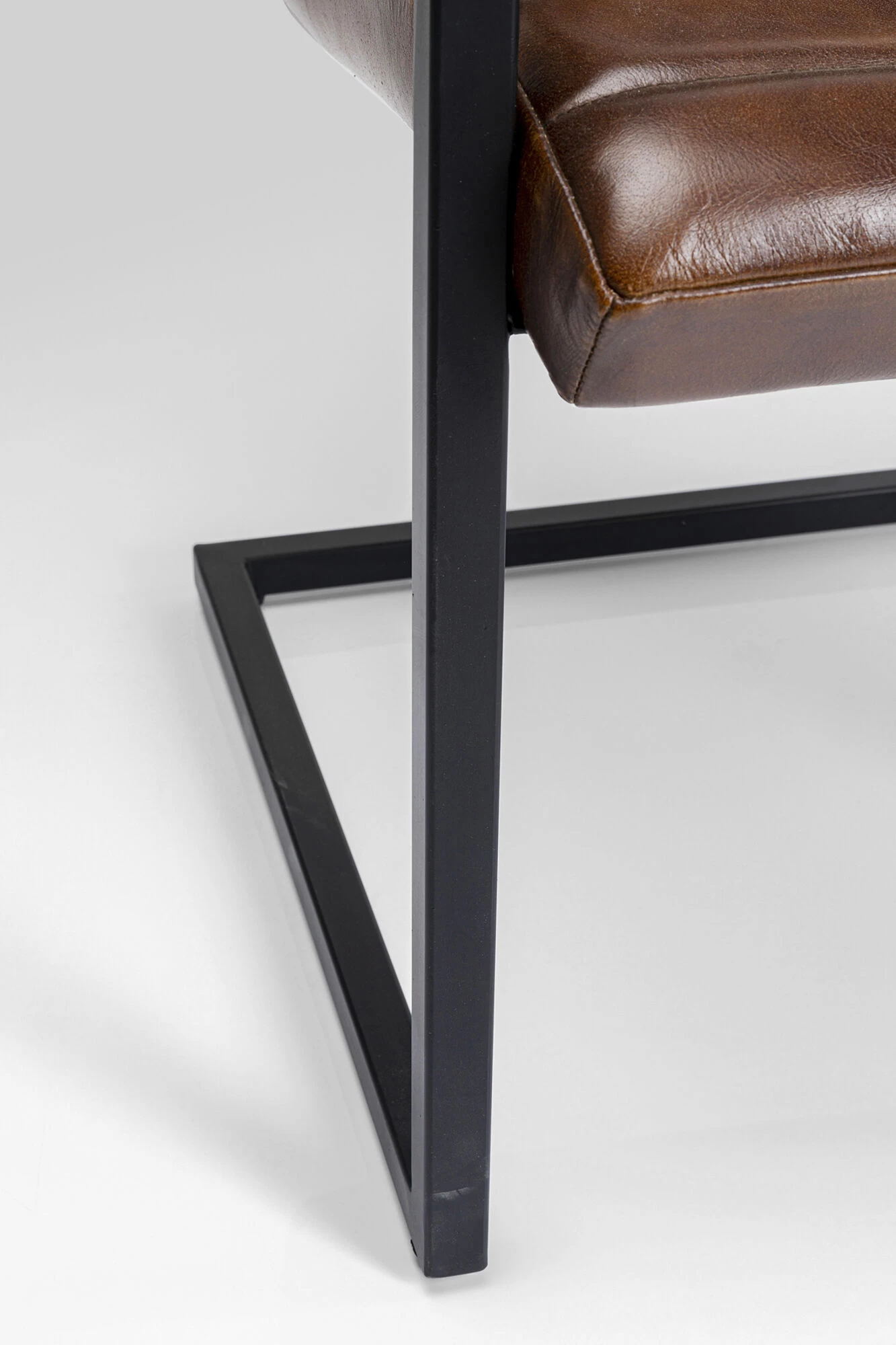 - Brauner Armlehnstuhl mit schwarzem Gestell aus Metall im Freischwinger-Design