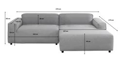 - Modernes Ecksofa in Grau mit Ottomane rechts, 274 cm breit, in bestem Polsterhandwerk gefertigt