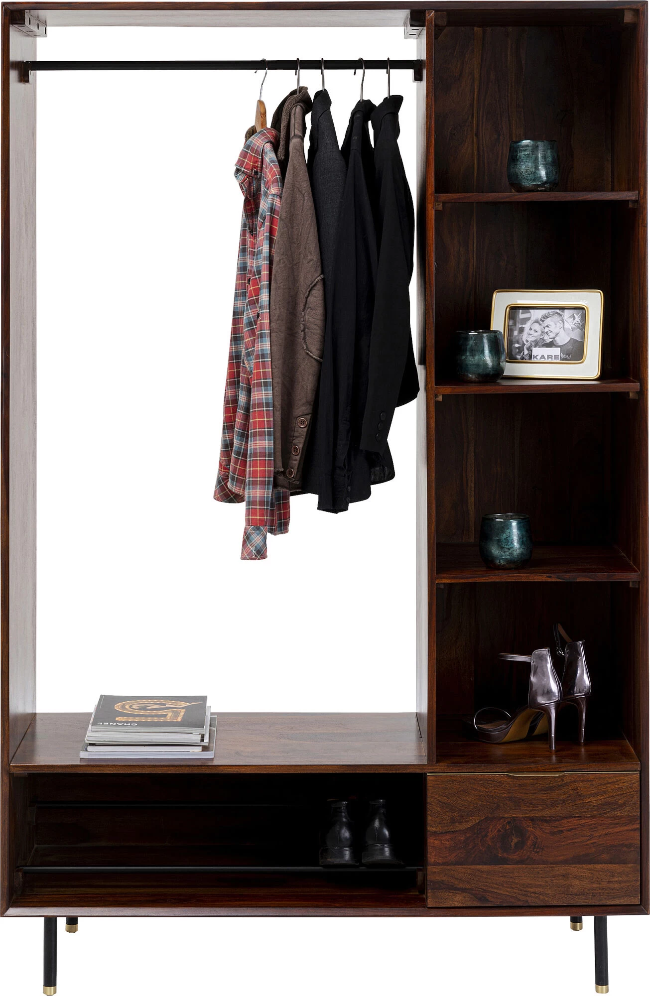 - Diese Flurgarderobe bietet viel Stauraum mit ihrer Kleiderstange, dem extra Fach mit Schuhhaltern, einer Schublade und dem Regal